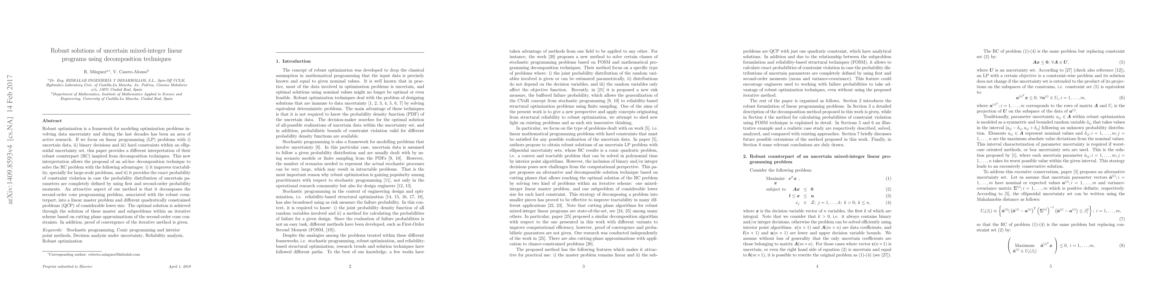 This paper introduces a new method for solving uncertain mixed-integer linear programs using decomposition techniques, improving tractability and providing an exact probability of constraint violation.