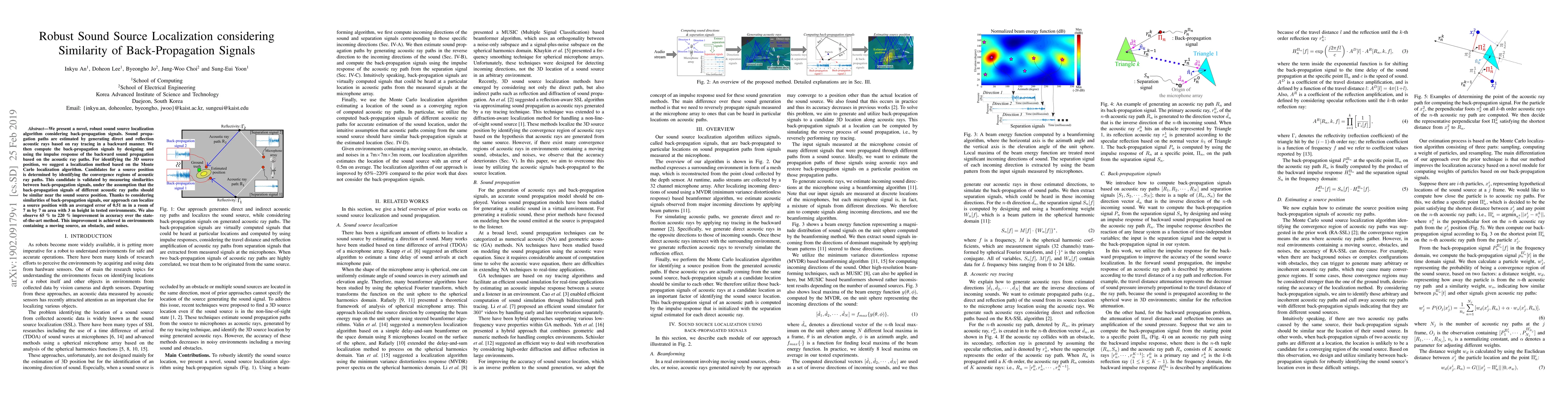This paper proposes a robust sound source localization algorithm that leverages back-propagation signals and ray tracing to estimate sound propagation paths. The method identifies the source position by validating candidates based on the similarity of back-propagation signals, achieving an average error of 0.51 m and significant accuracy improvements over existing methods in complex environments.