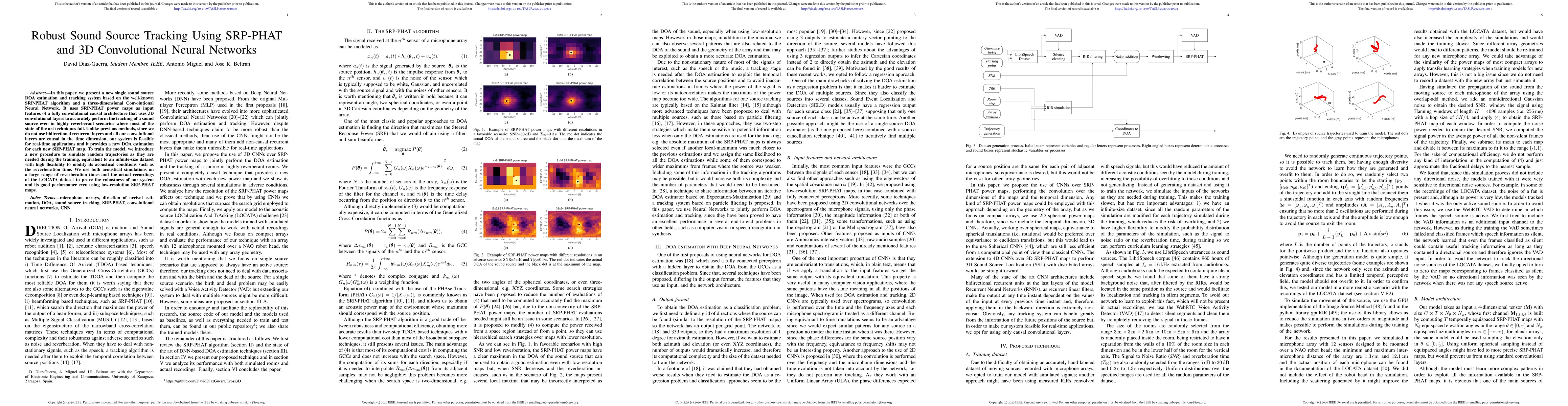 This paper proposes a robust sound source tracking system combining SRP-PHAT and 3D convolutional neural networks for real-time DOA estimation, demonstrating superior performance in reverberant environments compared to existing methods. The system's causal convolutional architecture and simulated training data enhance its adaptability and efficiency.