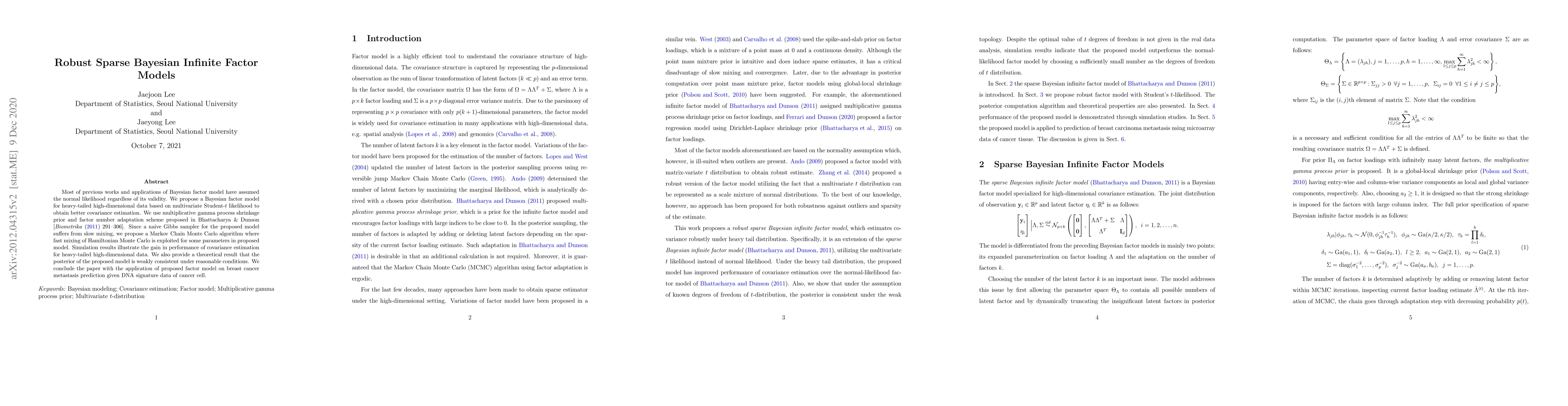 A new Bayesian factor model is proposed for handling heavy-tailed high-dimensional data with improved covariance estimation, and its performance is demonstrated through simulation results and an application to breast cancer metastasis prediction.