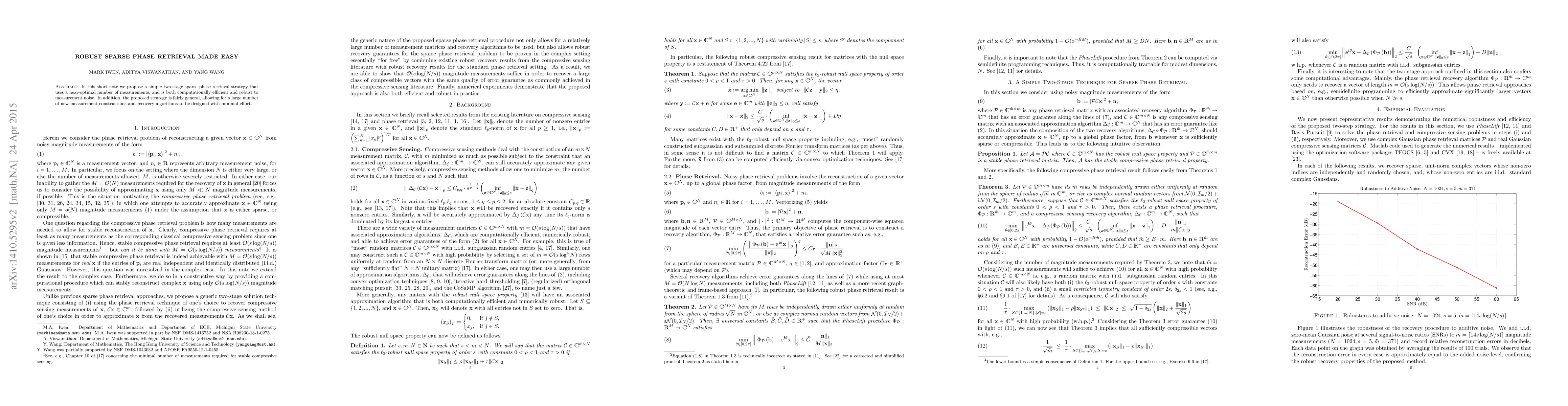 Researchers propose a simple two-stage strategy for sparse phase retrieval that requires minimal measurements and is robust to noise, enabling efficient recovery of compressed signals with minimal computational effort.