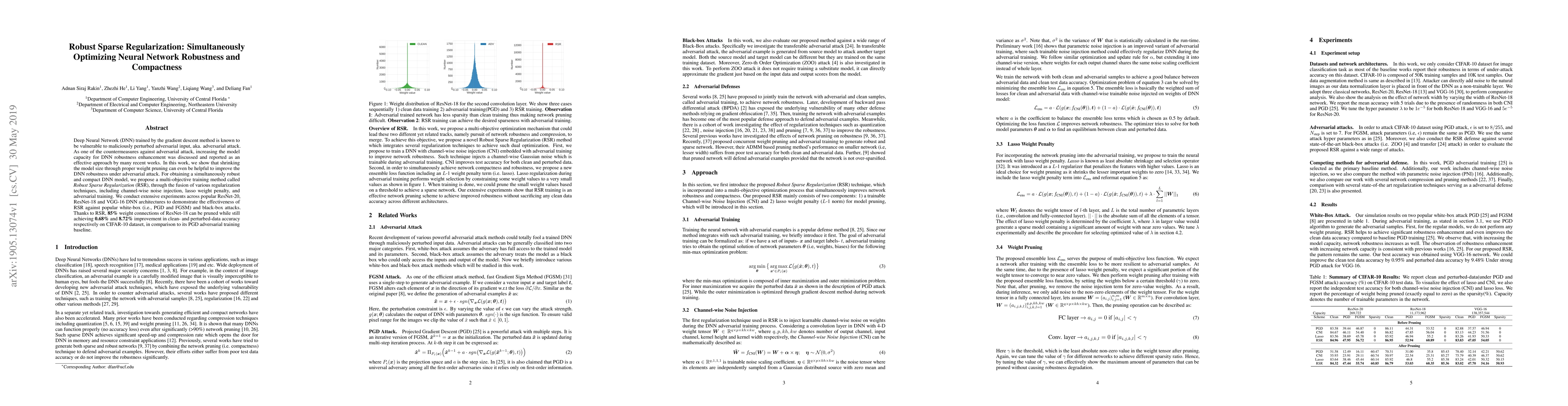 This paper proposes Robust Sparse Regularization (RSR) to enhance both the robustness and compactness of Deep Neural Networks (DNNs) against adversarial attacks. RSR integrates various regularization techniques to achieve a balance between model size reduction and robustness, demonstrating significant improvements in accuracy under both white-box and black-box attacks.