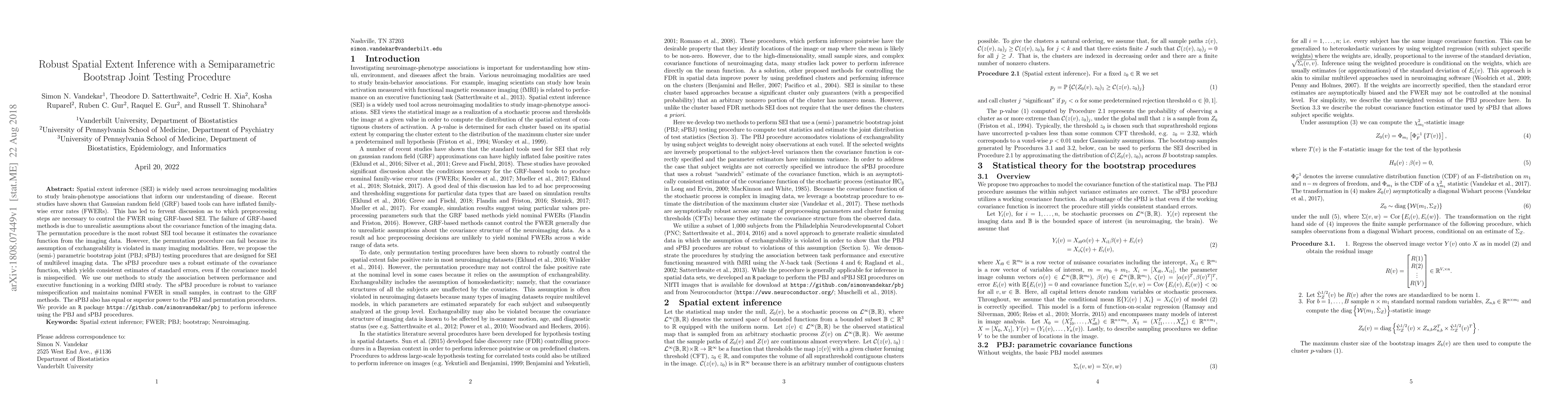 Spatial extent inference (SEI) is widely used across neuroimaging modalities to study brain-phenotype associations that inform our understanding of disease. Recent studies have shown that Gaussian random field (GRF) based tools can have inflated family-wise error rates (FWERs). This has led to fervent discussion as to which preprocessing steps are necessary to control the FWER using GRF-based SEI. The failure of GRF-based methods is due to unrealistic assumptions about the covariance function of the imaging data. The permutation procedure is the most robust SEI tool because it estimates the covariance function from the imaging data. However, the permutation procedure can fail because its assumption of exchangeability is violated in many imaging modalities. Here, we propose the (semi-) parametric bootstrap joint (PBJ; sPBJ) testing procedures that are designed for SEI of multilevel imaging data. The sPBJ procedure uses a robust estimate of the covariance function, which yields consistent estimates of standard errors, even if the covariance model is misspecified. We use our methods to study the association between performance and executive functioning in a working fMRI study. The sPBJ procedure is robust to variance misspecification and maintains nominal FWER in small samples, in contrast to the GRF methods. The sPBJ also has equal or superior power to the PBJ and permutation procedures. We provide an R package https://github.com/simonvandekar/pbj to perform inference using the PBJ and sPBJ procedures