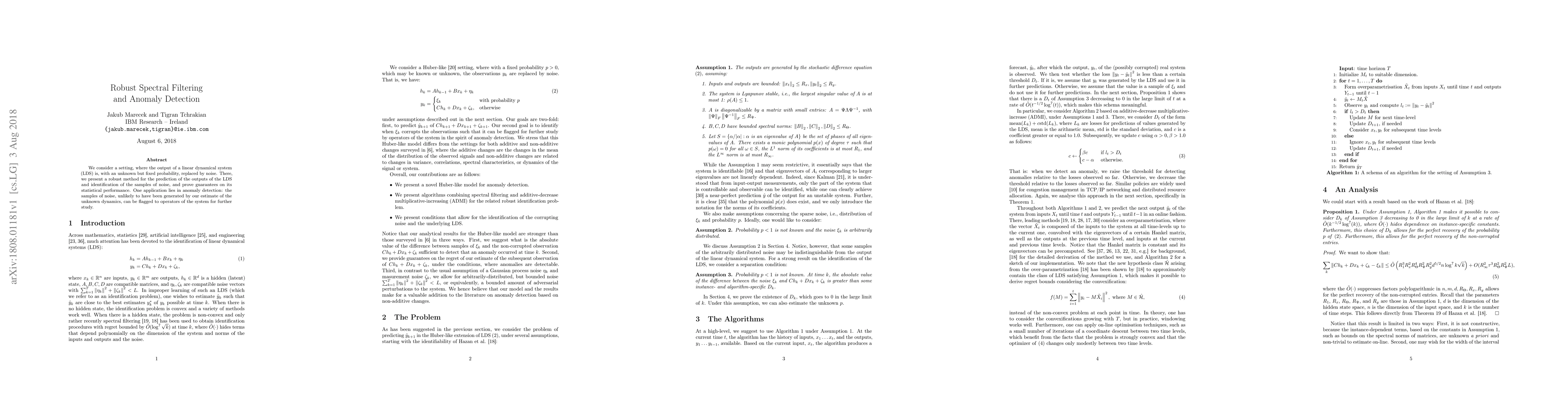 A new method for predicting output of a linear dynamical system with noise is presented, enabling robust anomaly detection by flagging noisy samples for further study.