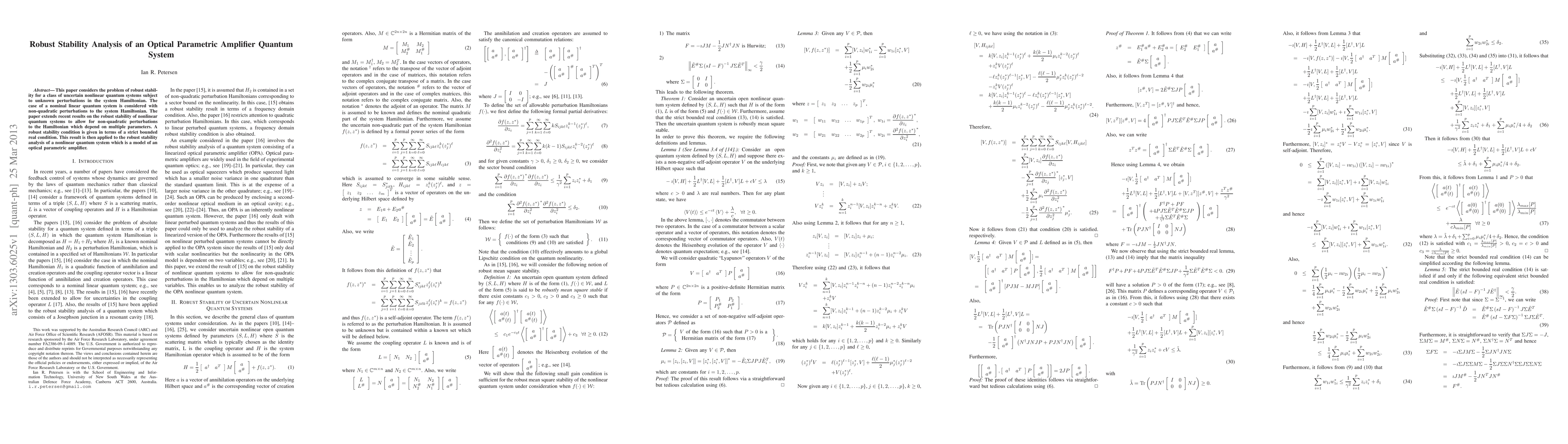 This paper considers the problem of robust stability for a class of uncertain nonlinear quantum systems subject to unknown perturbations in the system Hamiltonian. The case of a nominal linear quantum system is considered with non-quadratic perturbations to the system Hamiltonian. The paper extends recent results on the robust stability of nonlinear quantum systems to allow for non-quadratic perturbations to the Hamiltonian which depend on multiple parameters. A robust stability condition is given in terms of a strict bounded real condition. This result is then applied to the robust stability analysis of a nonlinear quantum system which is a model of an optical parametric amplifier.