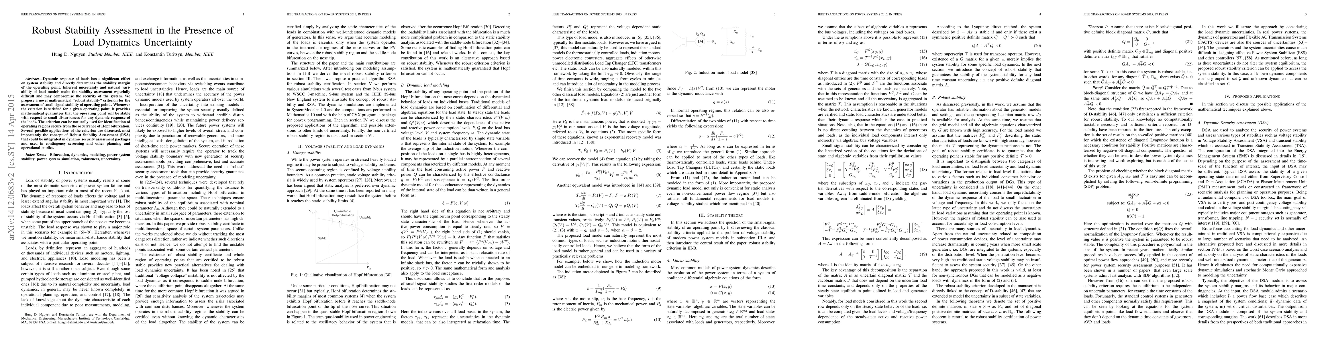 Dynamic response of loads has a significant effect on system stability and directly determines the stability margin of the operating point. Inherent uncertainty and natural variability of load models make the stability assessment especially difficult and may compromise the security of the system. We propose a novel mathematical "robust stability" criterion for the assessment of small-signal stability of operating points. Whenever the criterion is satisfied for a given operating point, it provides mathematical guarantees that the operating point will be stable with respect to small disturbances for any dynamic response of the loads. The criterion can be naturally used for identification of operating regions secure from the occurrence of Hopf bifurcation. Several possible applications of the criterion are discussed, most importantly the concept of Robust Stability Assessment (RSA) that could be integrated in dynamic security assessment packages and used in contingency screening and other planning and operational studies.