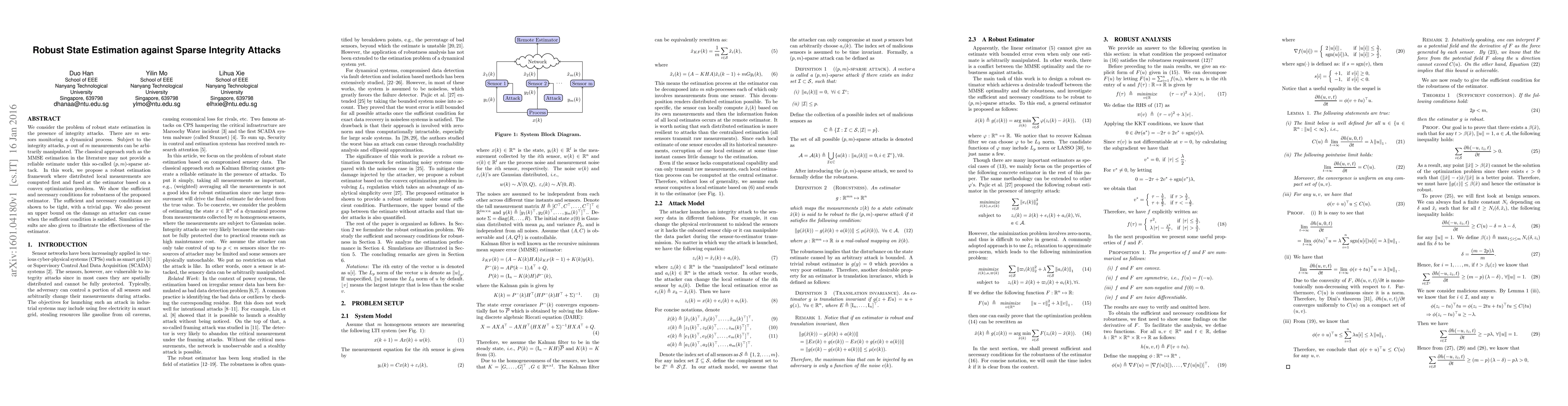 This paper proposes a robust state estimation framework to handle $(p,m)$-sparse integrity attacks on sensor measurements, using convex optimization for local measurement fusion. It establishes tight sufficient and necessary conditions for estimator robustness and provides an upper bound on attacker impact.