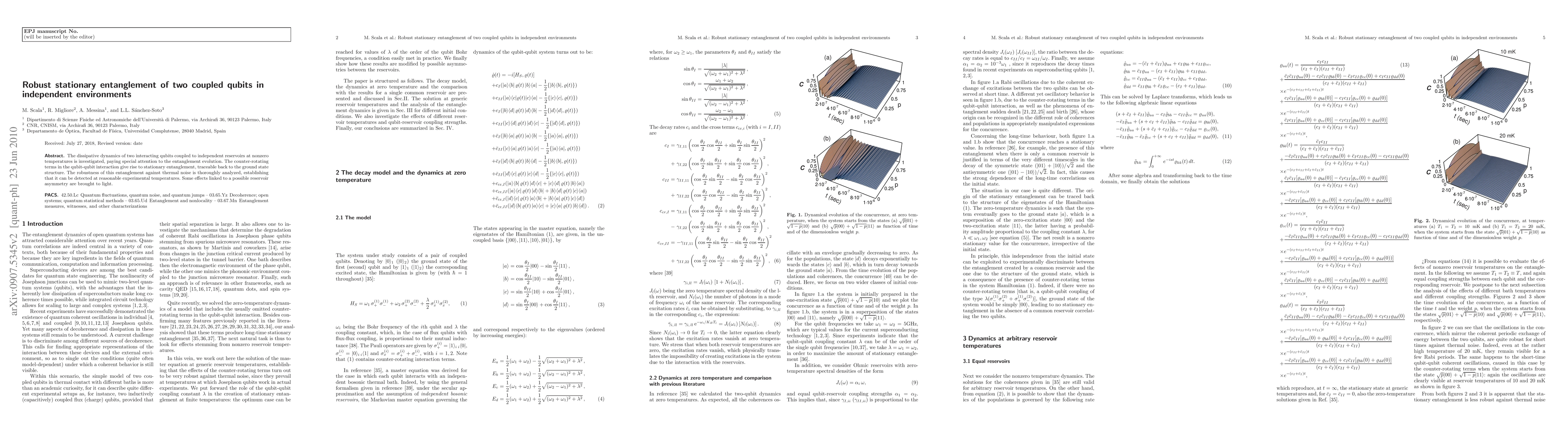 This paper investigates the entanglement dynamics of two coupled qubits in independent thermal environments, finding that counter-rotating terms lead to robust stationary entanglement. The study demonstrates that this entanglement remains detectable even at practical experimental temperatures, despite thermal noise.