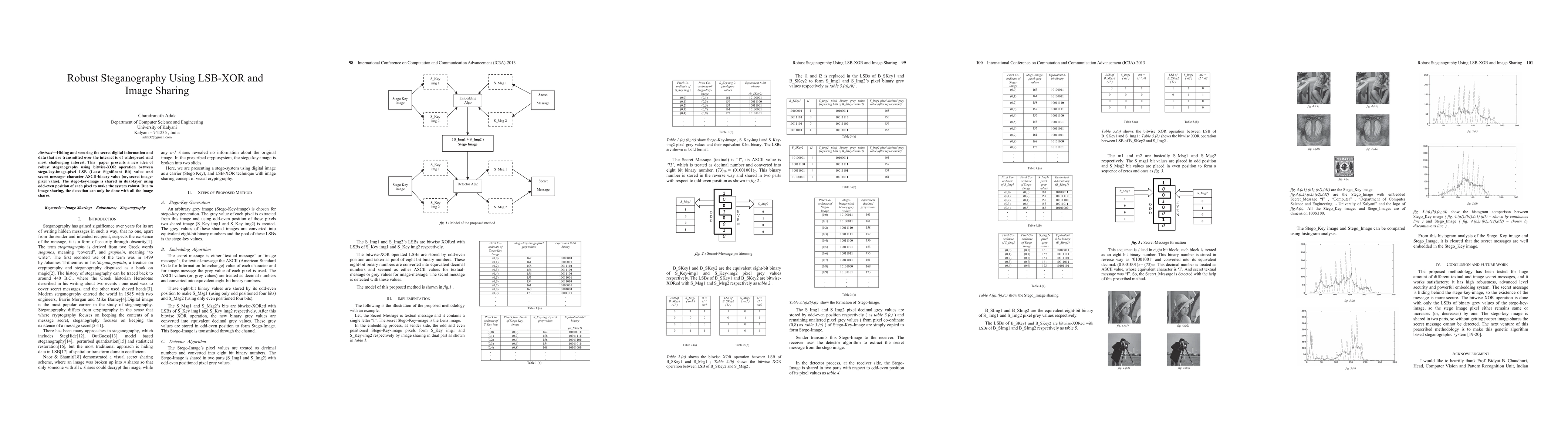 This paper introduces a robust steganography method using LSB-XOR operations and dual-layer image sharing, ensuring data security by hiding secret messages within images, with detection requiring all image shares.