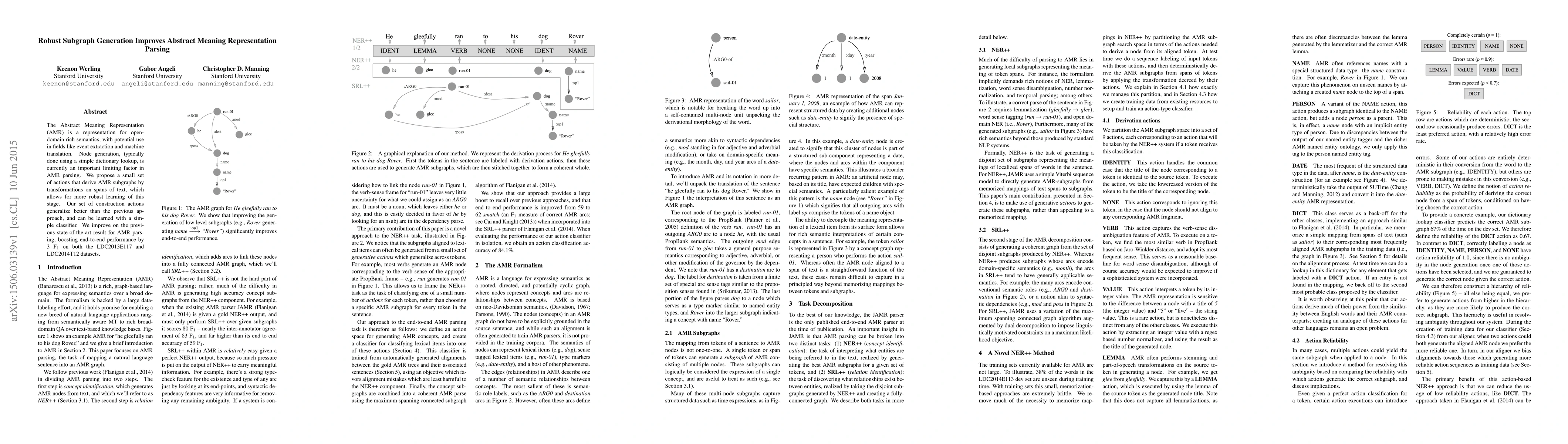 The Abstract Meaning Representation (AMR) is a representation for open-domain rich semantics, with potential use in fields like event extraction and machine translation. Node generation, typically done using a simple dictionary lookup, is currently an important limiting factor in AMR parsing. We propose a small set of actions that derive AMR subgraphs by transformations on spans of text, which allows for more robust learning of this stage. Our set of construction actions generalize better than the previous approach, and can be learned with a simple classifier. We improve on the previous state-of-the-art result for AMR parsing, boosting end-to-end performance by 3 F$_1$ on both the LDC2013E117 and LDC2014T12 datasets.