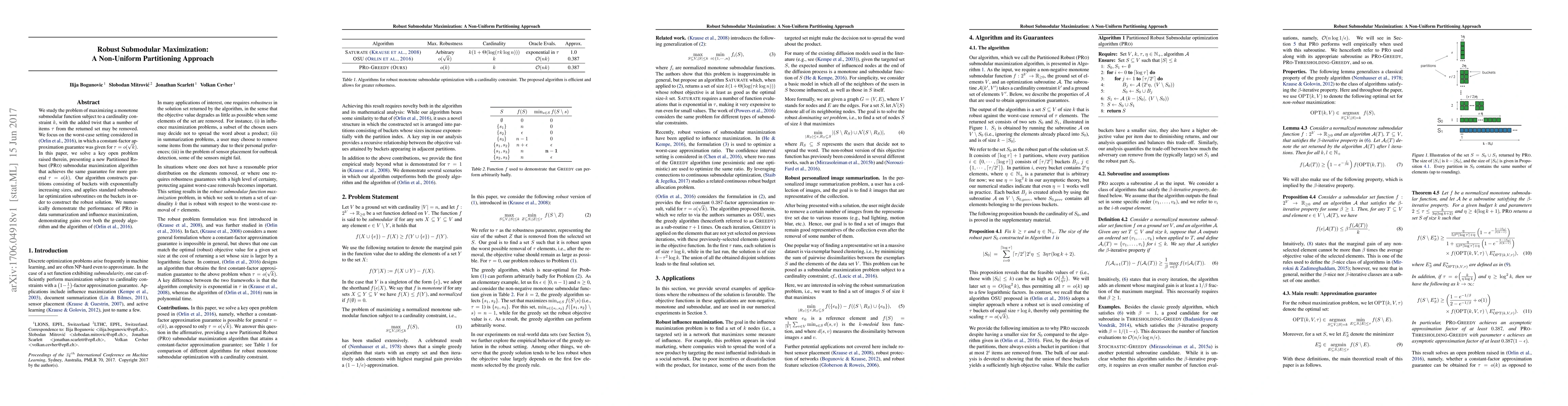 We study the problem of maximizing a monotone submodular function subject to a cardinality constraint $k$, with the added twist that a number of items $\tau$ from the returned set may be removed. We focus on the worst-case setting considered in (Orlin et al., 2016), in which a constant-factor approximation guarantee was given for $\tau = o(\sqrt{k})$. In this paper, we solve a key open problem raised therein, presenting a new Partitioned Robust (PRo) submodular maximization algorithm that achieves the same guarantee for more general $\tau = o(k)$. Our algorithm constructs partitions consisting of buckets with exponentially increasing sizes, and applies standard submodular optimization subroutines on the buckets in order to construct the robust solution. We numerically demonstrate the performance of PRo in data summarization and influence maximization, demonstrating gains over both the greedy algorithm and the algorithm of (Orlin et al., 2016).