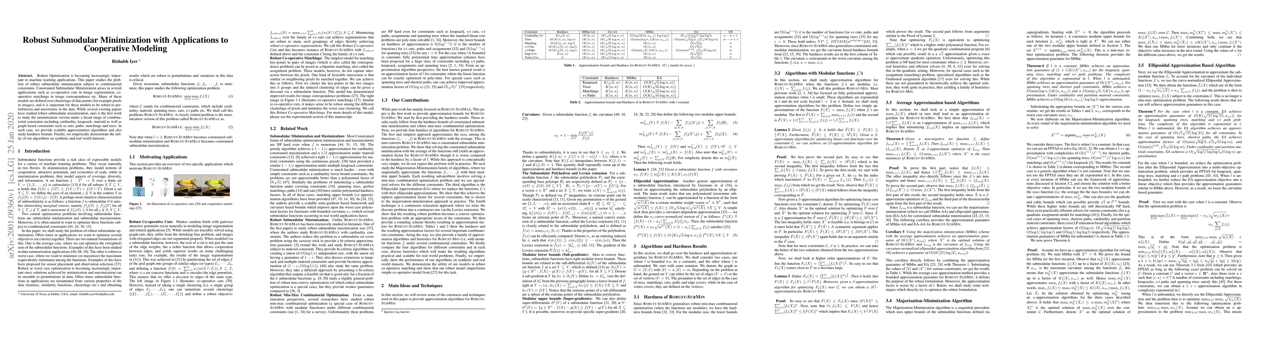 This paper explores robust submodular minimization under combinatorial constraints, addressing applications in cooperative modeling like image segmentation, and introduces scalable approximation algorithms for various constraints. The study also provides theoretical hardness bounds and demonstrates practical utility through experiments on both synthetic and real datasets.