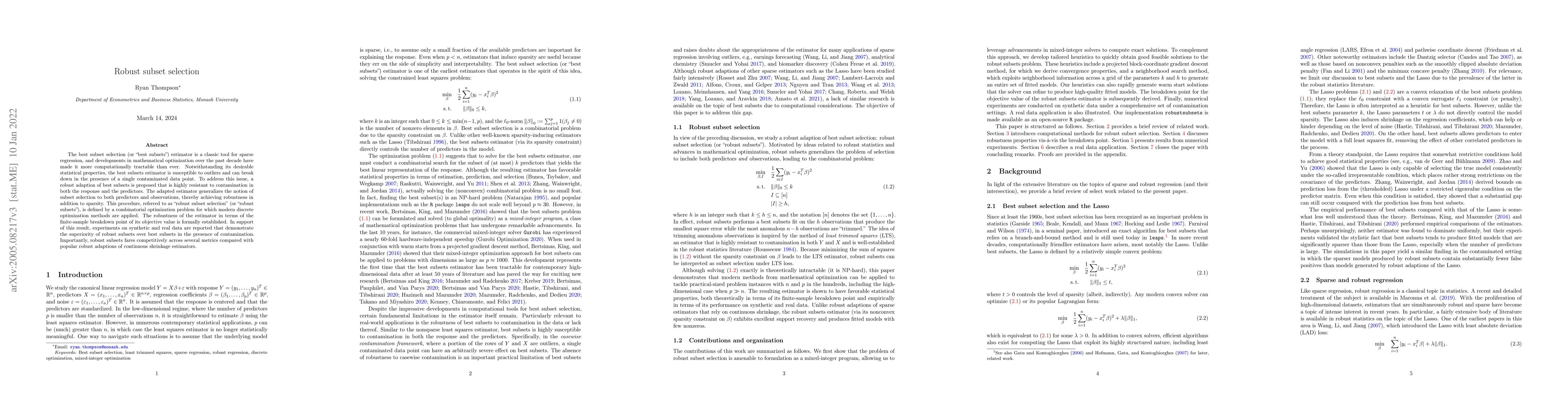 This paper proposes a robust subset selection method to address the vulnerability of traditional best subsets estimators to outliers. The new method enhances robustness by generalizing subset selection to both predictors and observations, achieving both sparsity and resistance to contamination, and is shown to outperform traditional methods in the presence of data contamination.