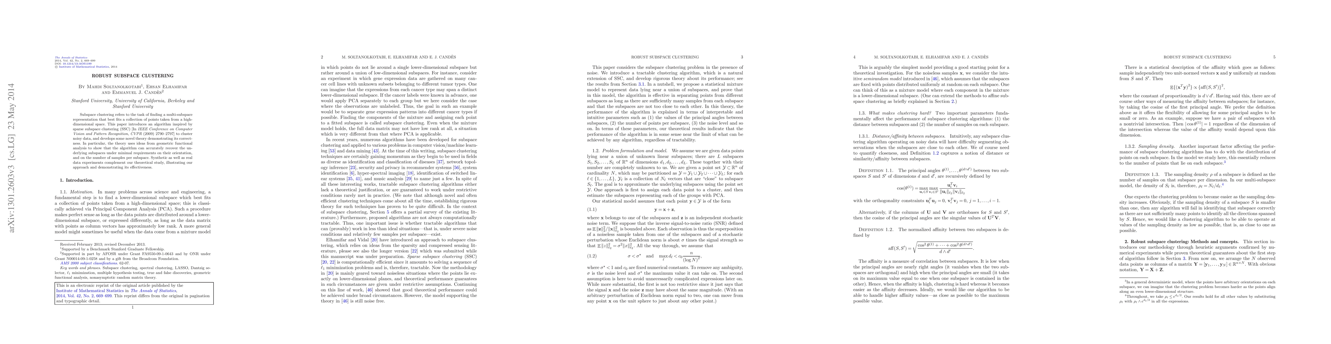 The paper introduces an algorithm for robust subspace clustering, inspired by sparse subspace clustering (SSC), which can accurately recover underlying subspaces with minimal requirements on their orientation and sample numbers per subspace.
