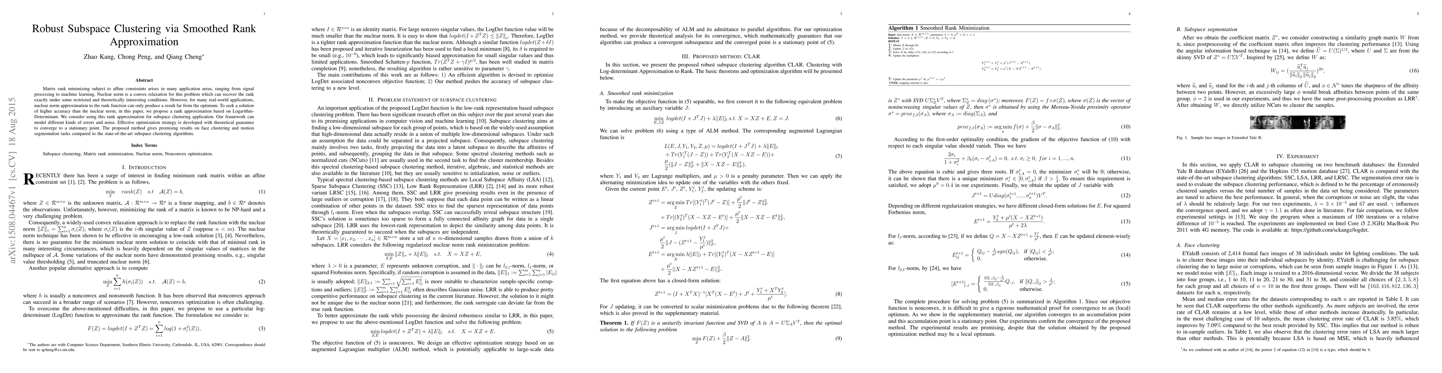 Researchers propose a new method for subspace clustering that uses Logarithm-Determinant rank approximation to achieve higher accuracy than existing methods, with promising results in face clustering and motion segmentation tasks.