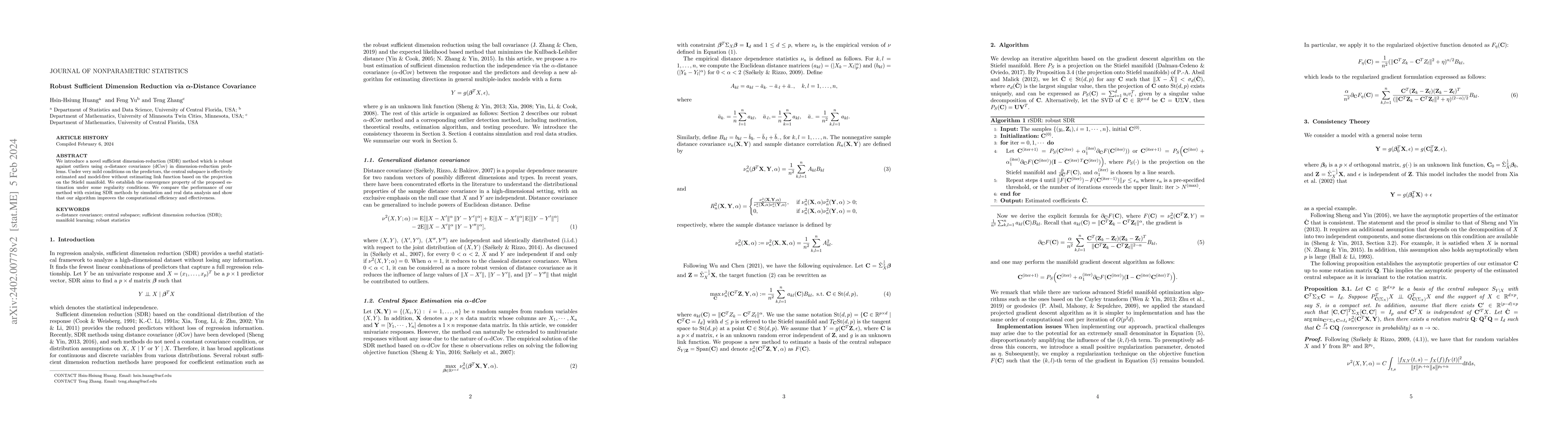 This paper proposes a robust sufficient dimension reduction method using $\alpha$-distance covariance to effectively estimate the central subspace under mild conditions, without requiring an estimated link function. The method demonstrates improved computational efficiency and effectiveness compared to existing SDR methods, as shown through simulations and real data analysis.