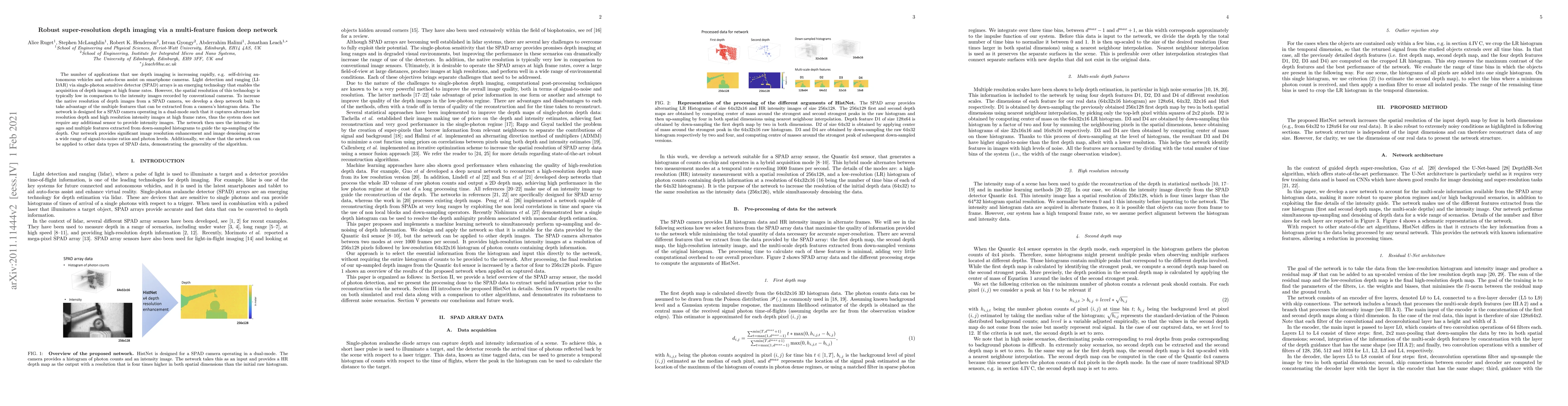 Researchers develop a deep network to enhance the spatial resolution of depth images from single-photon sensitive detector arrays, achieving four-fold resolution enhancement and denoising across various signal-to-noise ratios.