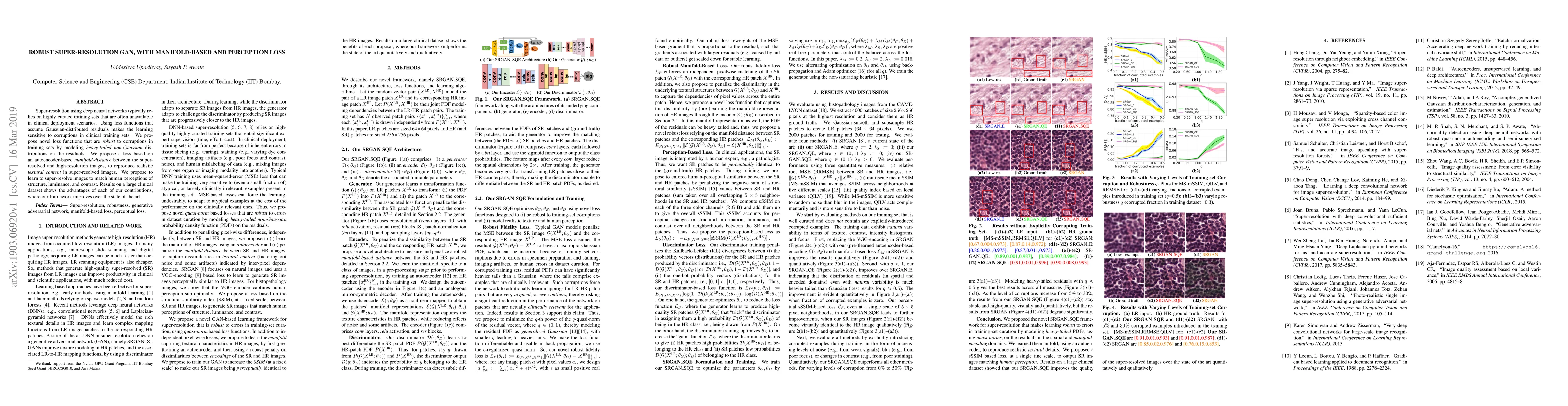 This paper proposes a robust super-resolution GAN using novel loss functions that model heavy-tailed distributions to handle corrupted training data. It introduces manifold-based and perception losses to enhance realistic textural content and human perception matching, outperforming state-of-the-art methods on clinical datasets.