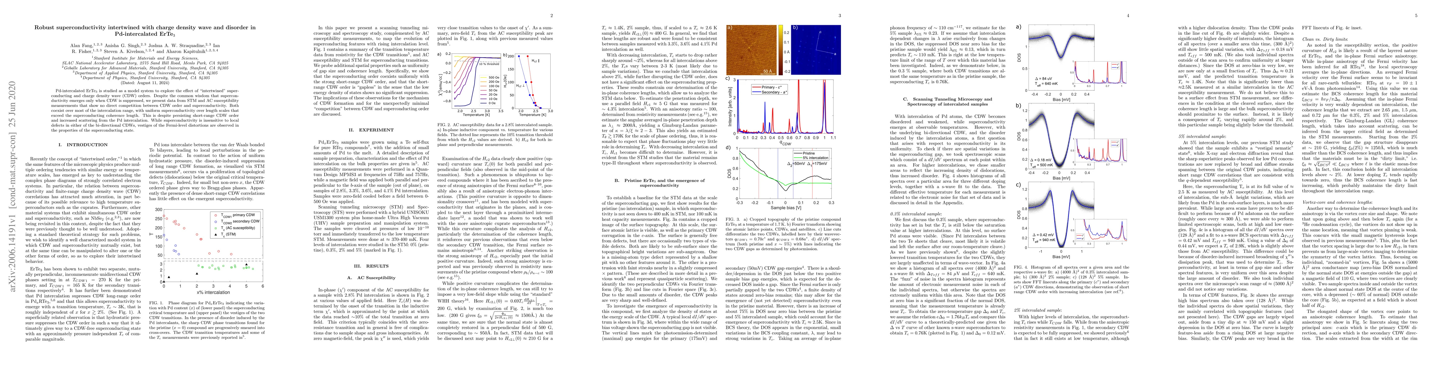 Pd-intercalated ErTe$_3$ is studied as a model system to explore the effect of "intertwined" superconducting and charge density wave (CDW) orders. Despite the common wisdom that superconductivity emerges only when CDW is suppressed, we present data from STM and AC susceptibility measurements that show no direct competition between CDW order and superconductivity. Both coexist over most of the intercalation range, with uniform superconductivity over length scales that exceed the superconducting coherence length. This is despite persisting short-range CDW order and increased scattering from the Pd intercalation. While superconductivity is insensitive to local defects in either of the bi-directional CDWs, vestiges of the Fermi-level distortions are observed in the properties of the superconducting state.