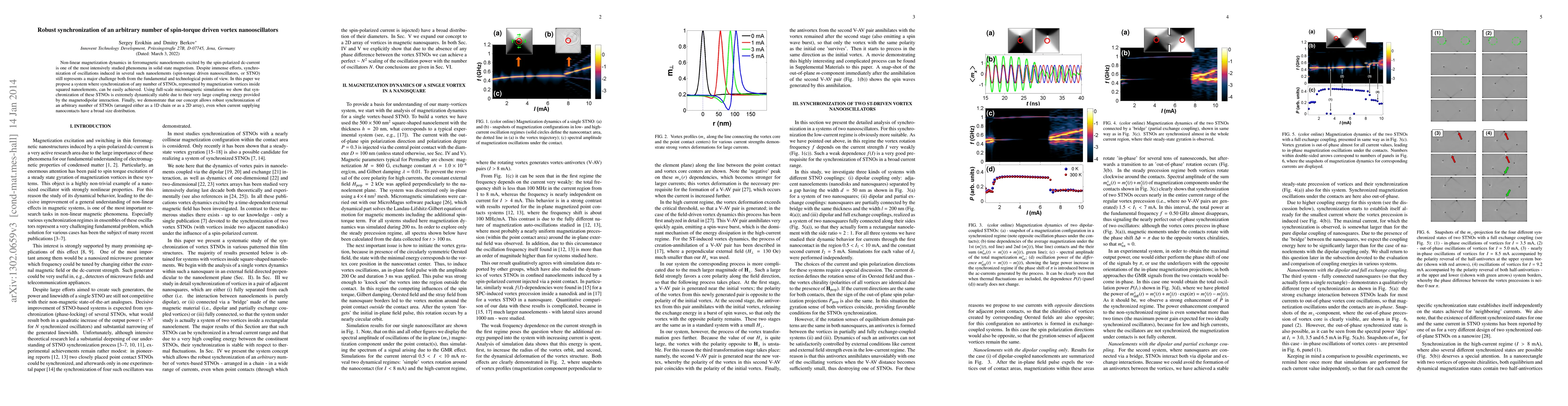 Non-linear magnetization dynamics in ferromagnetic nanoelements excited by the spin-polarized dc-current is one of the most intensively studied phenomena in solid state magnetism. Despite immense efforts, synchronization of oscillations induced in several such nanoelements (spin-torque driven nanooscillators, or STNO) still represents a major challenge both from the fundamental and technological points of view. In this paper we propose a system where synchronization of any number of STNOs, represented by magnetization vortices inside squared nanoelements, can be easily achieved. Using full-scale micromagnetic simulations we show that synchronization of these STNOs is extremely dynamically stable due to their very large coupling energy provided by the magnetodipolar interaction. Finally, we demonstrate that our concept allows robust synchronization of an arbitrary number of STNOs (arranged either as a 1D chain or as a 2D array), even when current supplying nanocontacts have a broad size distribution.