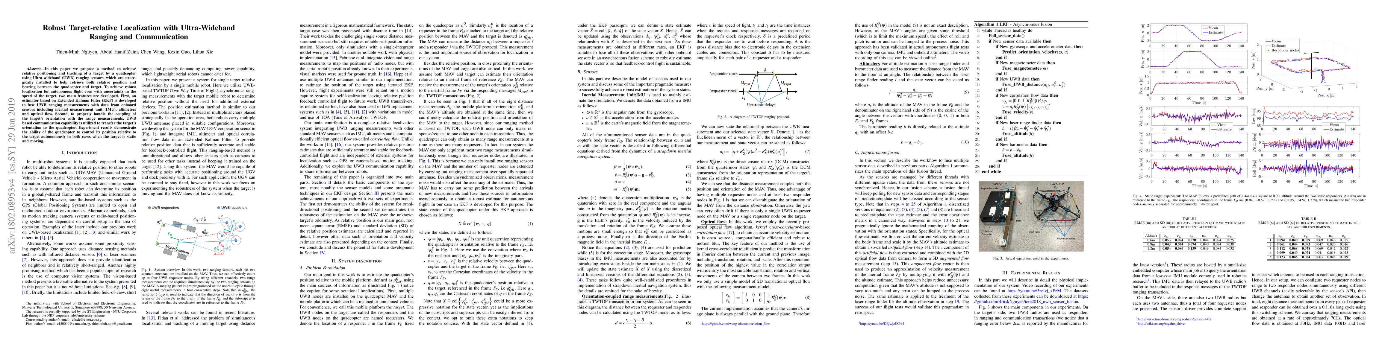 This paper proposes a method for quadcopter target-relative localization using Ultra-wideband (UWB) ranging and communication. It employs an Extended Kalman Filter to fuse UWB data with onboard sensors and uses UWB communication to transfer target orientation, enabling robust localization even with target speed uncertainty.