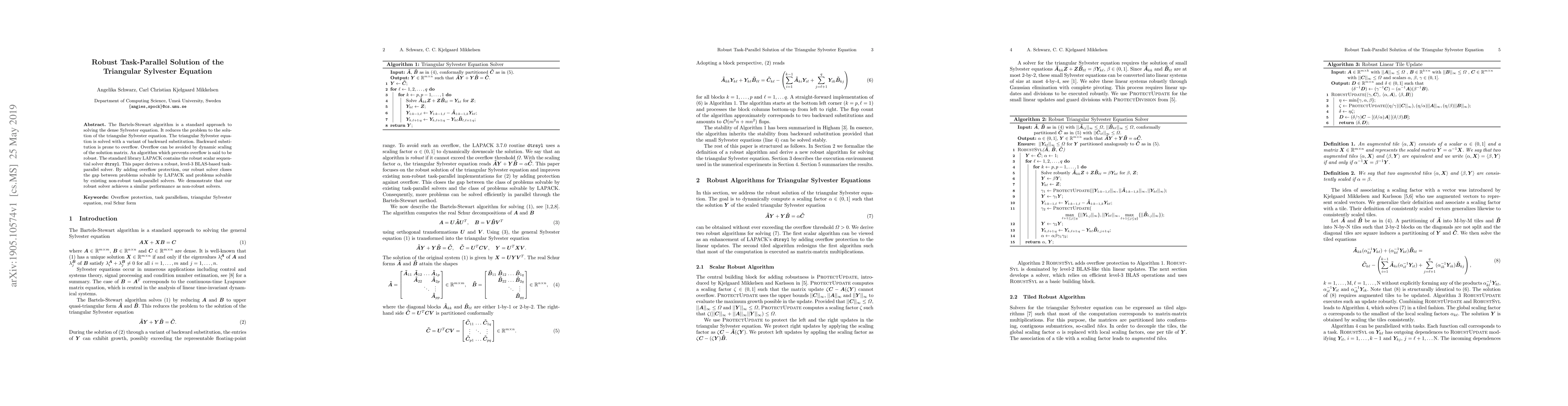 This paper introduces a robust, task-parallel solver for the triangular Sylvester equation, incorporating dynamic scaling to prevent overflow, thus improving upon the standard LAPACK solver's limitations and achieving comparable performance.