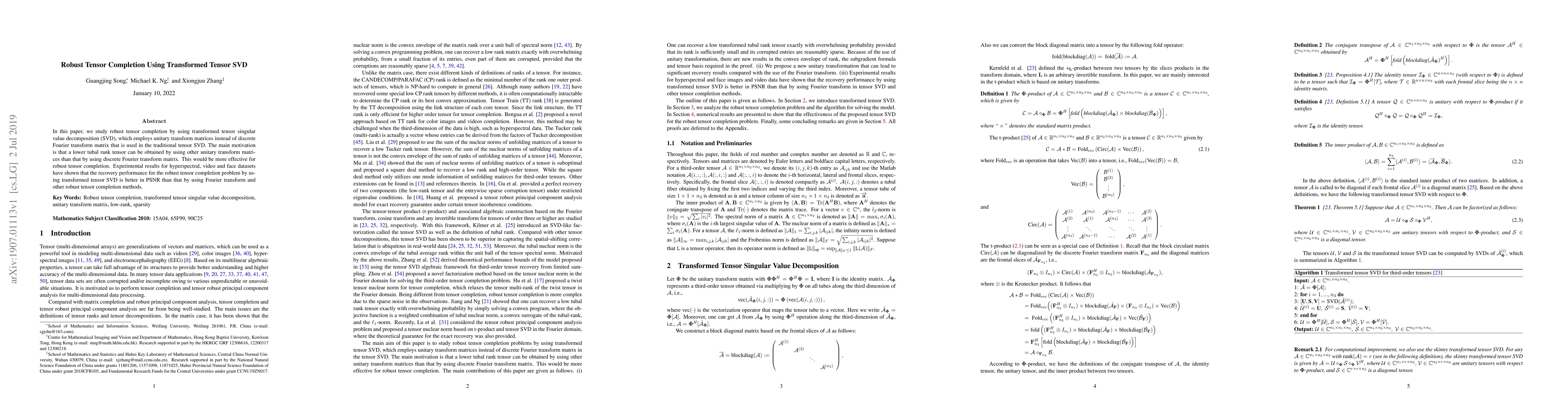 The research employs transformed tensor singular value decomposition (SVD) using unitary transform matrices instead of the discrete Fourier transform, aiming to achieve a lower tubal rank tensor for robust completion.