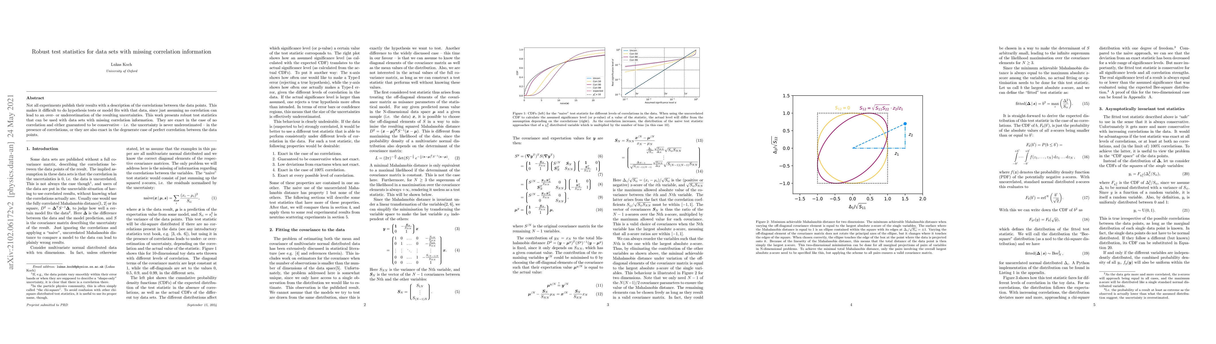 This research introduces robust test statistics for datasets lacking correlation information, ensuring accurate uncertainty estimations even when correlations are present or perfect, thus facilitating reliable hypothesis tests and model fits.