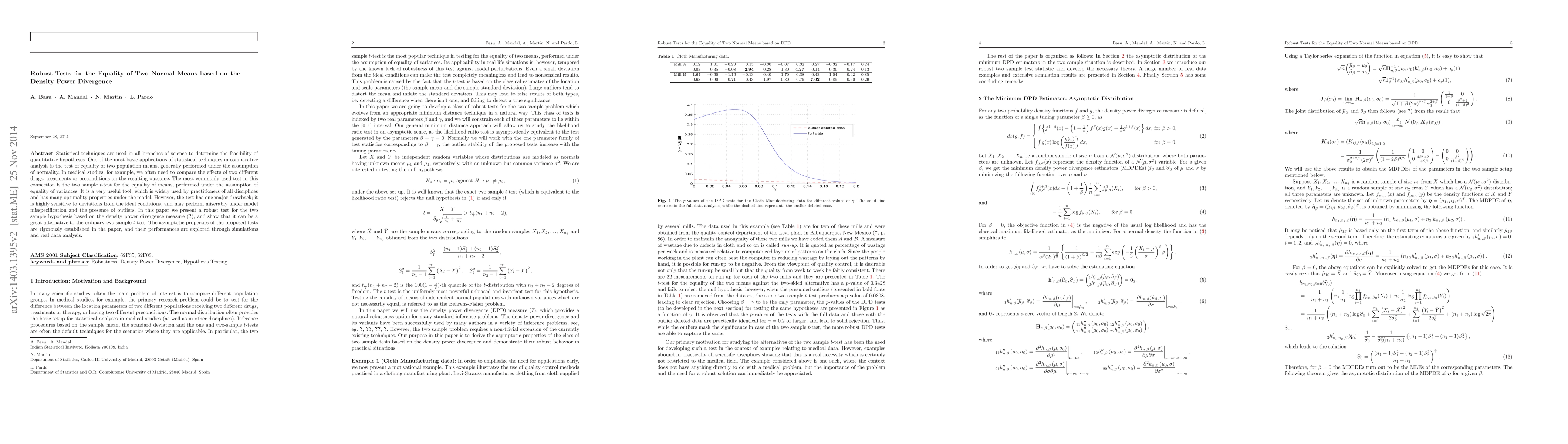 This paper proposes a robust statistical test for comparing the means of two normal populations based on the density power divergence measure, offering an alternative to the traditional two sample $t$-test. The test is shown to be more robust to deviations from normality and the presence of outliers, with its asymptotic properties rigorously established and performance evaluated through simulations and real data analysis.