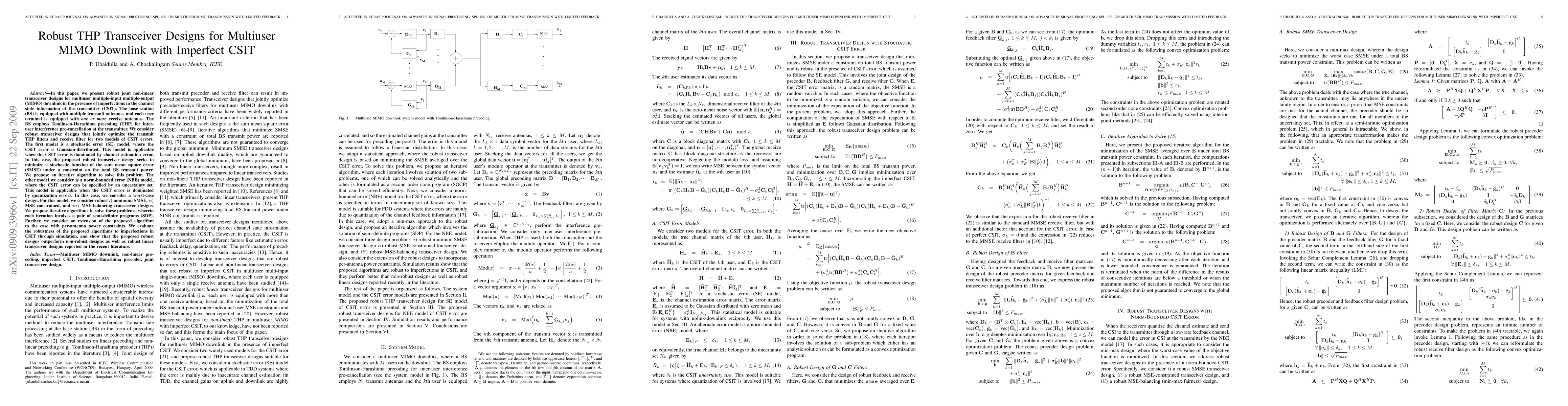 This paper presents robust joint non-linear transceiver designs for multiuser MIMO downlink using Tomlinson-Harashima precoding (THP) under imperfect CSIT. It proposes iterative algorithms for stochastic and norm-bounded error models, optimizing transmit THP filters and receive filters to minimize sum mean square error under power constraints.