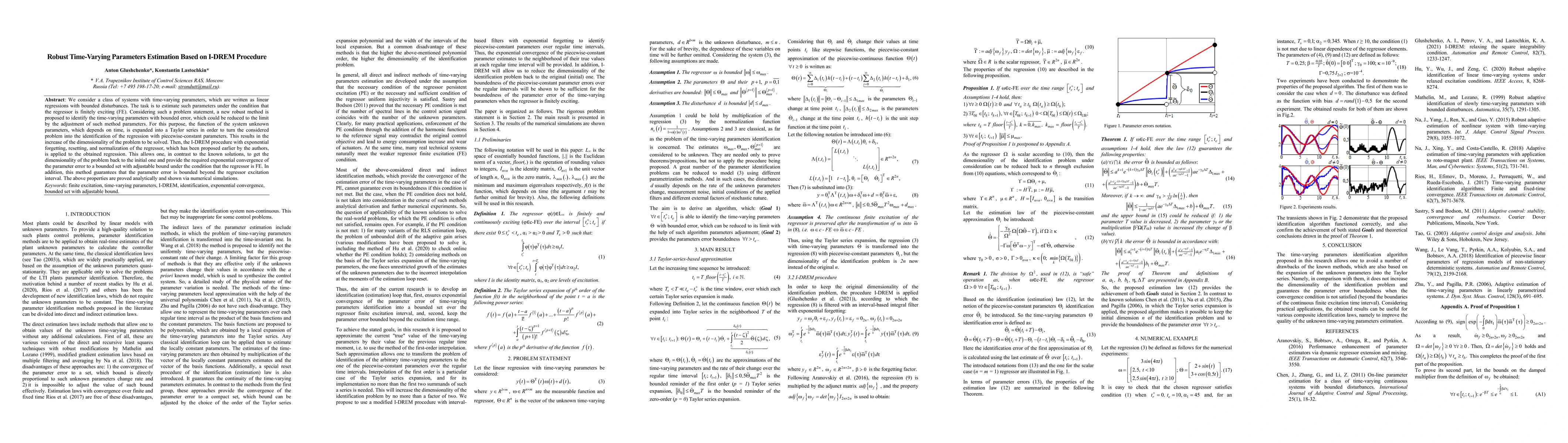 We consider a class of systems with time-varying parameters, which are written as linear regressions with bounded disturbances. The task is to estimate such parameters under the condition that the regressor is finitely exciting (FE). Considering such a problem statement, a new robust method is proposed to identify the time-varying parameters with bounded error, which could be reduced to the limit by the adjustment of such method parameters. For this purpose, the function of the system unknown parameters, which depends on time, is expanded into a Taylor series in order to turn the considered problem into the identification of the regression with piecewise-constant parameters. This results in the increase of the dimensionality of the problem to be solved. Then, the I-DREM procedure with exponential forgetting, resetting, and normalization of the regressor, which has been proposed earlier by the authors, is applied to the obtained regression. This allows one, in contrast to the known solutions, to get the dimensionality of the problem back to the initial one and provide the required exponential convergence of the parameter error to a bounded set with adjustable bound under the condition that the regressor is FE. In addition, this method guarantees that the parameter error is bounded beyond the regressor excitation interval. The above properties are proved analytically and shown via numerical simulations.