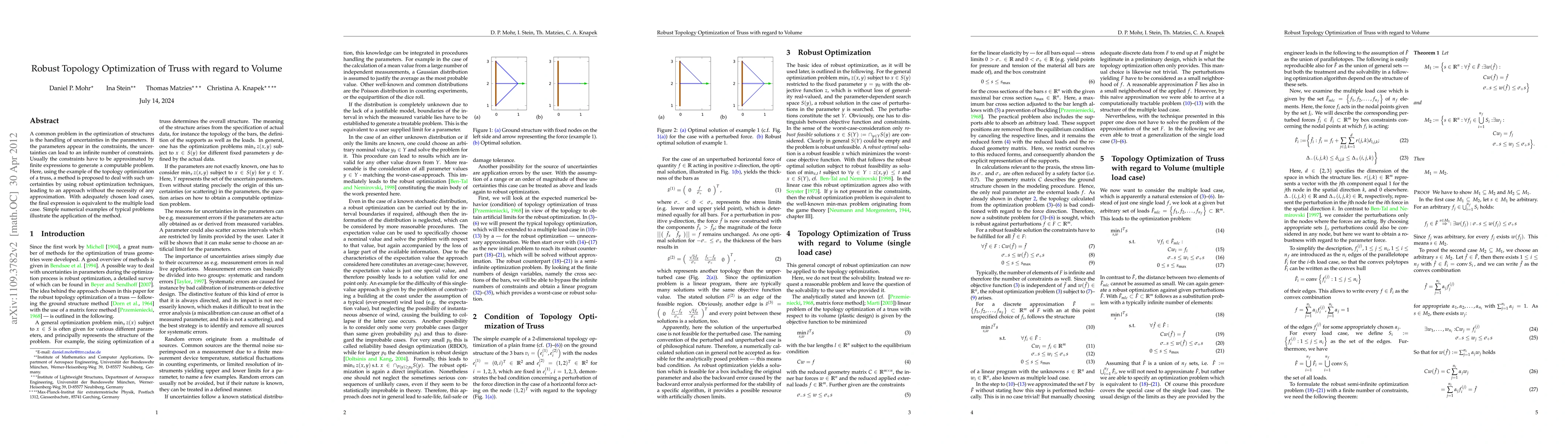 A common problem in the optimization of structures is the handling of uncertainties in the parameters. If the parameters appear in the constraints, the uncertainties can lead to an infinite number of constraints. Usually the constraints have to be approximated by finite expressions to generate a computable problem. Here, using the example of the topology optimization of a truss, a method is proposed to deal with such uncertainties by using robust optimization techniques, leading to an approach without the necessity of any approximation. With adequately chosen load cases, the final expression is equivalent to the multiple load case. Simple numerical examples of typical problems illustrate the application of the method.