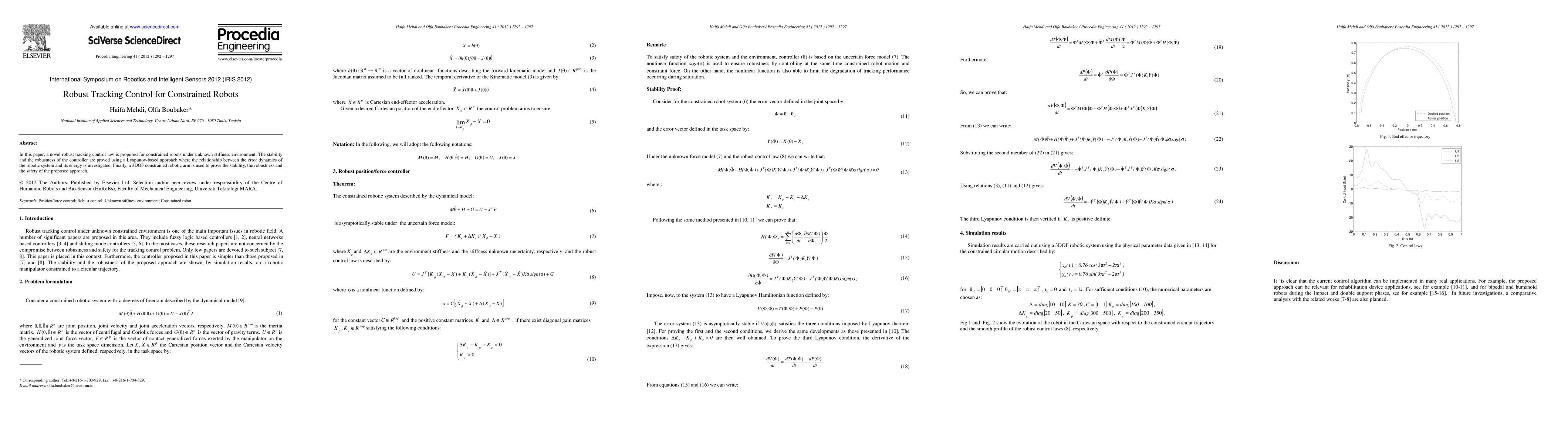 A novel robust tracking control law is proposed for constrained robots, improving stability and robustness in unknown stiffness environments using a Lyapunov-based approach.