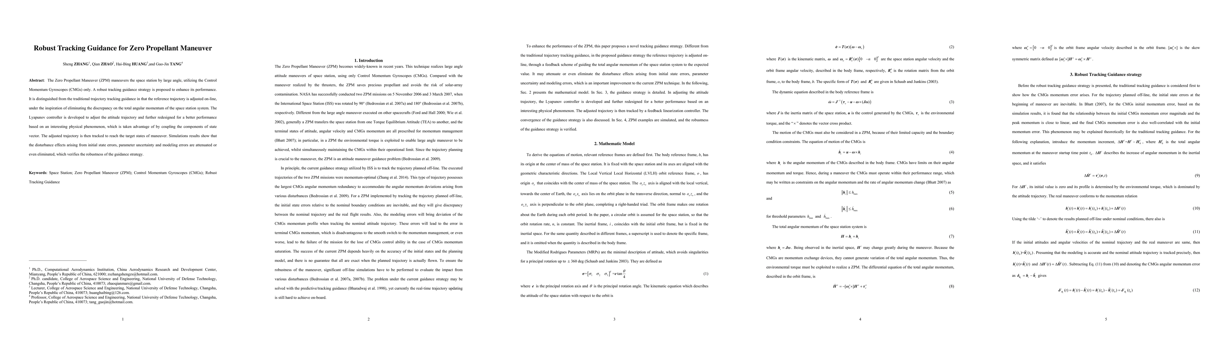 The Zero Propellant Maneuver (ZPM) maneuvers the space station by large angle, utilizing the Control Momentum Gyroscopes (CMGs) only. A robust tracking guidance strategy is proposed to enhance its performance. It is distinguished from the traditional trajectory tracking guidance in that the reference trajectory is adjusted on-line, under the inspiration of eliminating the discrepancy on the total angular momentum of the space station system. The Lyapunov controller is developed to adjust the attitude trajectory and further redesigned for a better performance based on an interesting physical phenomenon, which is taken advantage of by coupling the components of state vector. The adjusted trajectory is then tracked to reach the target states of maneuver. Simulations results show that the disturbance effects arising from initial state errors, parameter uncertainty and modeling errors are attenuated or even eliminated, which verifies the robustness of the guidance strategy.