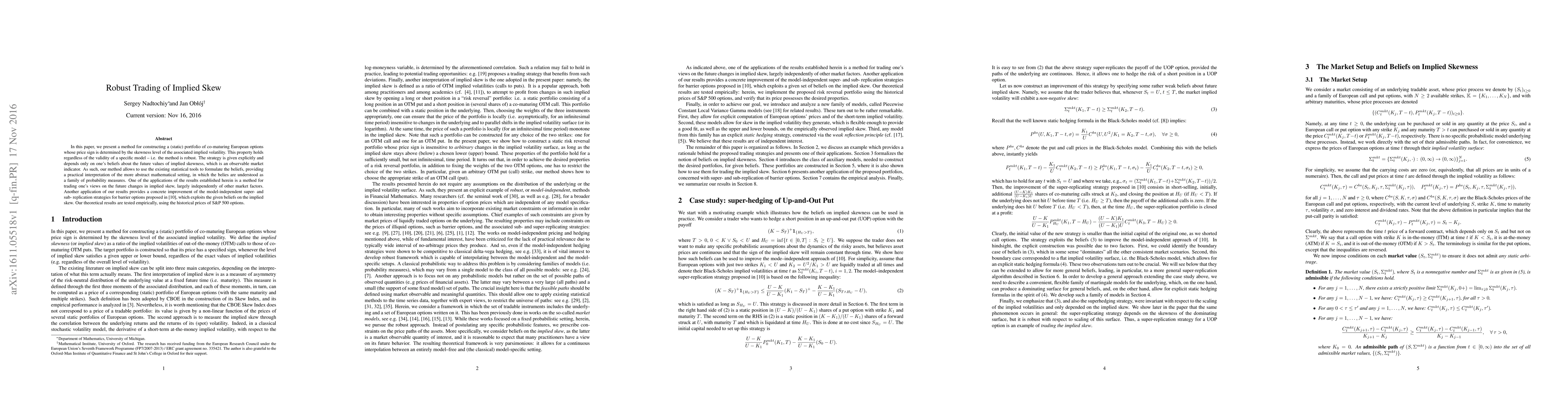In this paper, we present a method for constructing a (static) portfolio of co-maturing European options whose price sign is determined by the skewness level of the associated implied volatility. This property holds regardless of the validity of a specific model - i.e. the method is robust. The strategy is given explicitly and depends only on beliefs about the future values of implied skewness, which is an observable market indicator. As such, our method allows to use the existing statistical tools to formulate the beliefs, providing a practical interpretation of the more abstract mathematical setting, in which the belies are understood as a family of probability measures. One of the applications of our results is a method for trading views on the future changes in implied skew, largely independently of other market factors. Another application provides a concrete improvement of the existing model-independent super- and sub- replication strategies for barrier options, which exploits a given set of beliefs on the implied skew. Our theoretical results are tested empirically, using the historical prices of SP500 options.