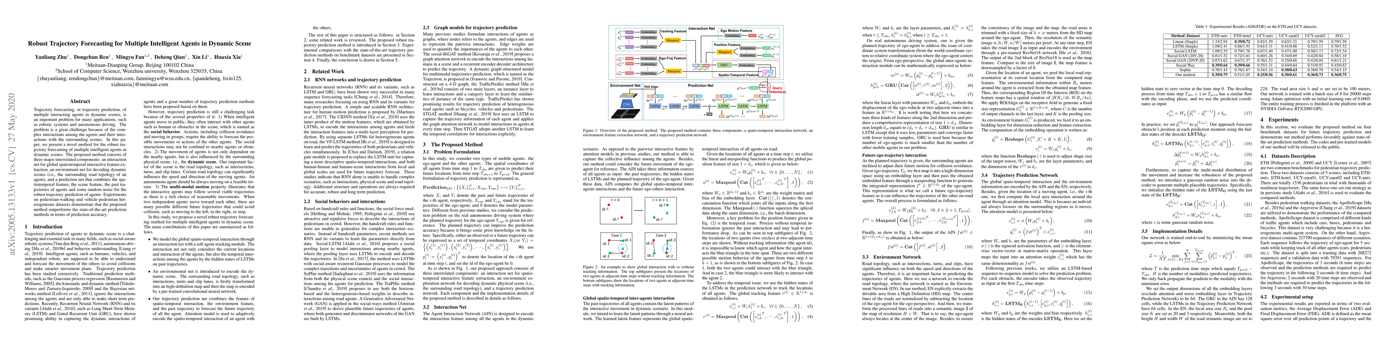 This paper introduces a novel method for robust trajectory forecasting of multiple intelligent agents in dynamic environments, employing an interaction net, an environment net, and a prediction net to extract features and predict agent movements. Experimental results show superior performance compared to state-of-the-art methods on pedestrian-walking and vehicle-pedestrian datasets.