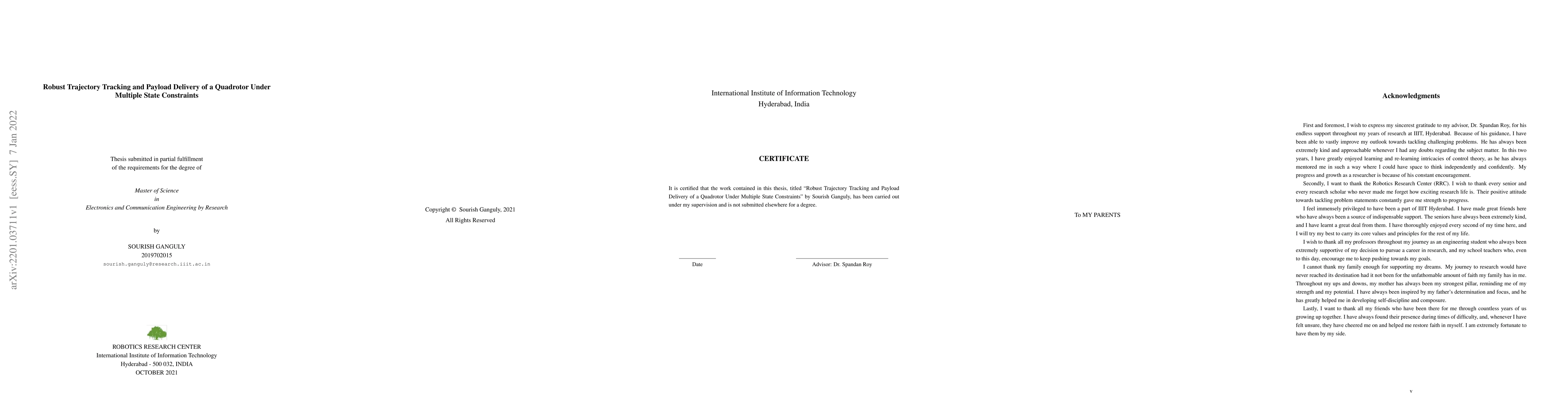 This paper designs robust controllers using Barrier Lyapunov Functions to enable a quadrotor to track trajectories and deliver payloads while adhering to multiple state constraints, including position, orientation, and velocity, under uncertainties and disturbances. The study demonstrates the effectiveness of the proposed method through both simulation and real-world experiments.