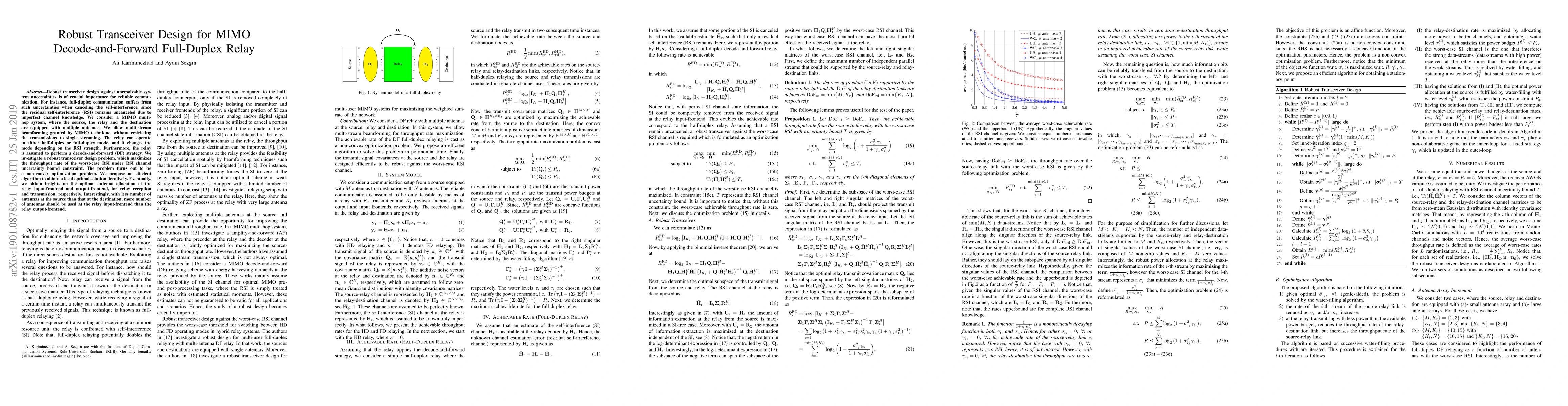 Robust transceiver design against unresolvable system uncertainties is of crucial importance for reliable communication. For instance, full-duplex communication suffers from such uncertainties when canceling the self-interference, since the residual self-interference (RSI) remains uncanceled due to imperfect channel knowledge. We consider a MIMO multi-hop system, where the source, the relay and the destination are equipped with multiple antennas. We allow multi-stream beamforming granted by MIMO technique, without restricting the transmissions to single streaming. The relay can operate in either half-duplex or full-duplex mode, and it changes the mode depending on the RSI strength. Furthermore, the relay is assumed to perform a decode-and-forward (DF) strategy. We investigate a robust transceiver design problem, which maximizes the throughput rate of the worst-case RSI under RSI channel uncertainty bound constraint. The problem turns out to be a non-convex optimization problem. We propose an efficient algorithm to obtain a local optimal solution iteratively. Eventually, we obtain insights on the optimal antenna allocation at the relay input-frontend and output-frontend, for relay reception and transmission, respectively. Interestingly, with less number of antennas at the source than that at the destination, more number of antennas should be used at the relay input-frontend than the relay output-frontend.