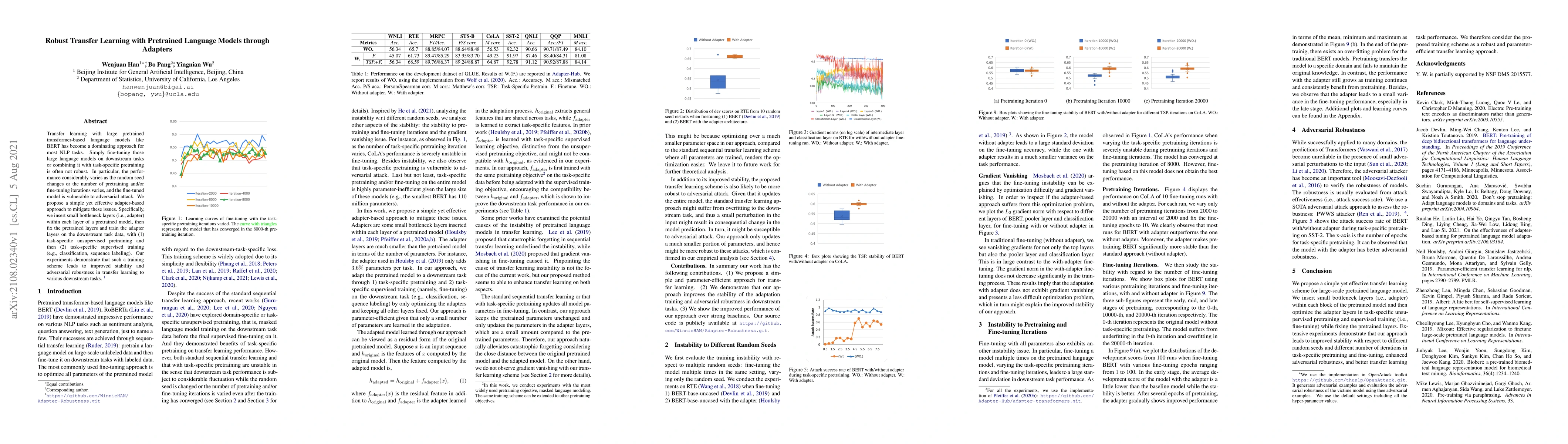 This paper proposes an adapter-based method to enhance the robustness of transfer learning using pretrained language models like BERT. By inserting small bottleneck layers within each layer of the pretrained model and training only these adapters, the approach achieves improved stability and adversarial robustness across various NLP tasks.