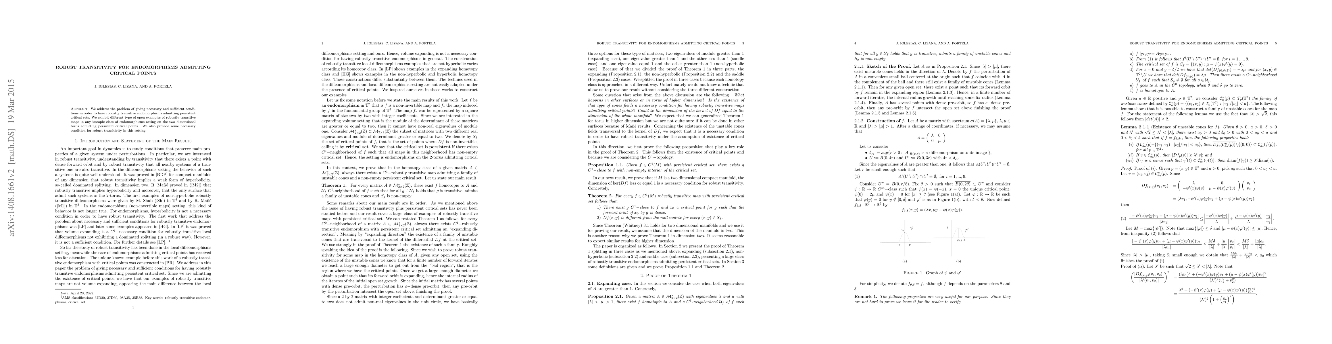 This paper establishes necessary and sufficient conditions for robust transitivity in endomorphisms on the two-dimensional torus, particularly focusing on those with persistent critical sets. It provides examples of robustly transitive maps within isotopic classes and outlines necessary conditions for such transitivity.
