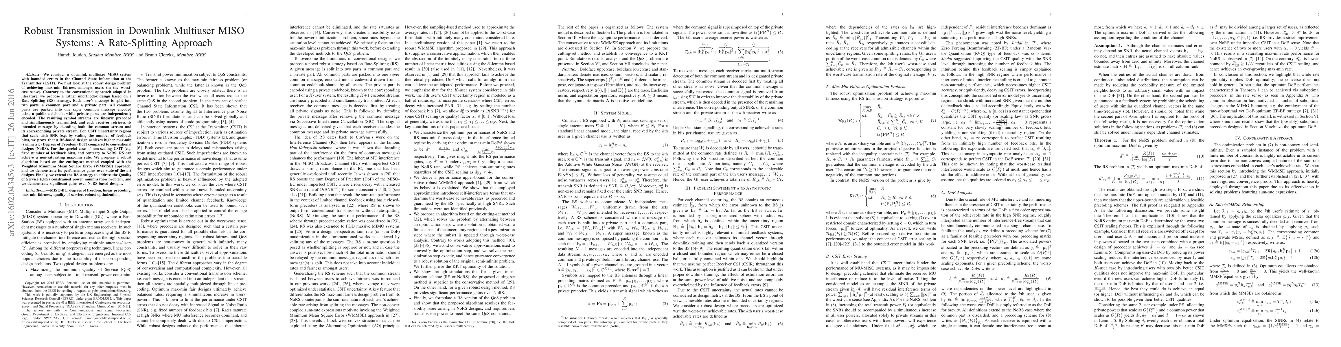This paper proposes a Rate-Splitting (RS) strategy for robust transmission in downlink multiuser MISO systems with imperfect CSIT, achieving higher max-min Degrees of Freedom and non-saturating max-min rates compared to conventional designs. The RS approach splits each user's message into common and private parts, encoded and transmitted separately, and demonstrates performance gains using a robust algorithm based on cutting-set and WMMSE methods.