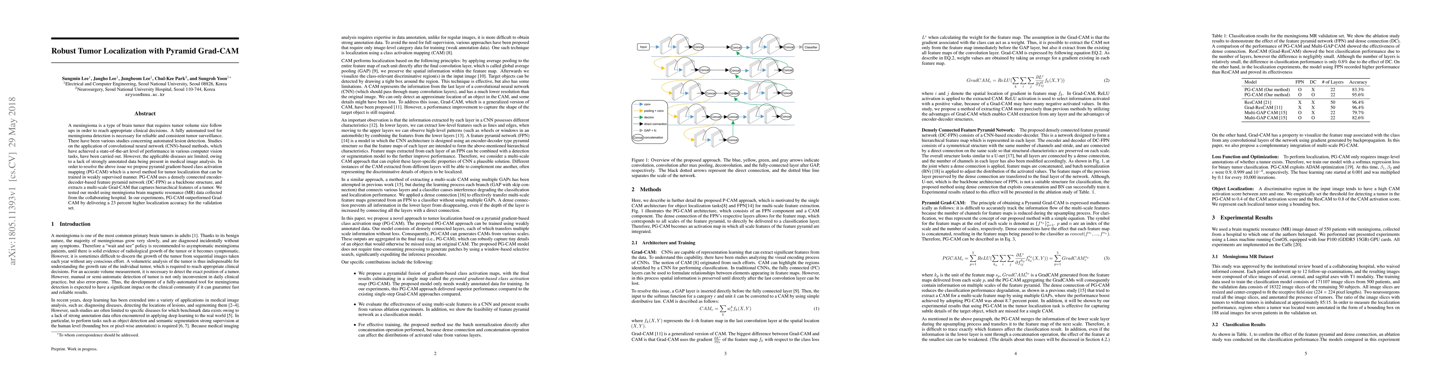 A new method called Pyramid Grad-CAM was used to localize tumors in brain images with improved accuracy compared to existing methods. This could lead to more reliable and consistent tumor surveillance for conditions like meningioma.