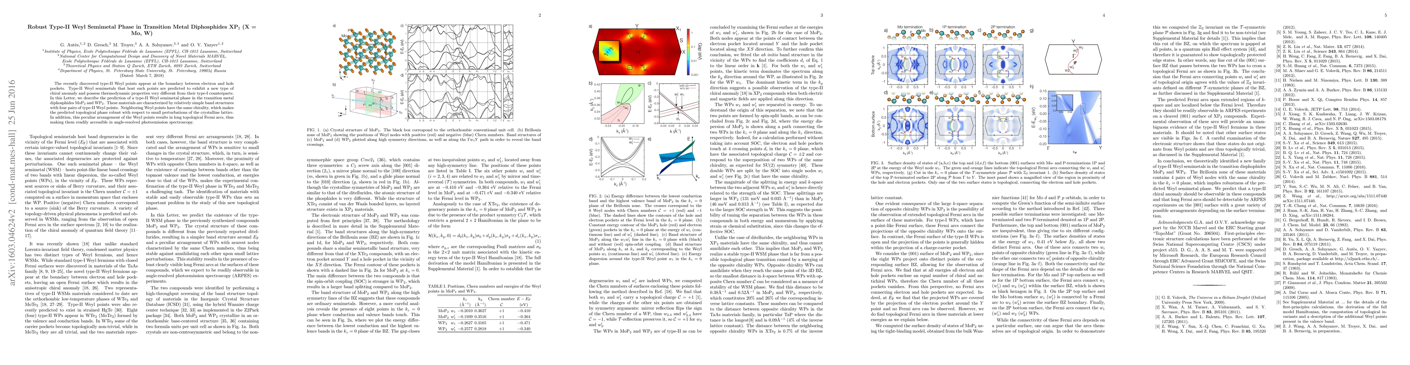 This research predicts a robust type-II Weyl semimetal phase in transition metal diphosphides MoP$_2$ and WP$_2$, featuring four pairs of Weyl points that confer unique chiral anomalies and topological properties. The configuration of these Weyl points enhances the stability of the topological phase and facilitates detection via spectroscopy.