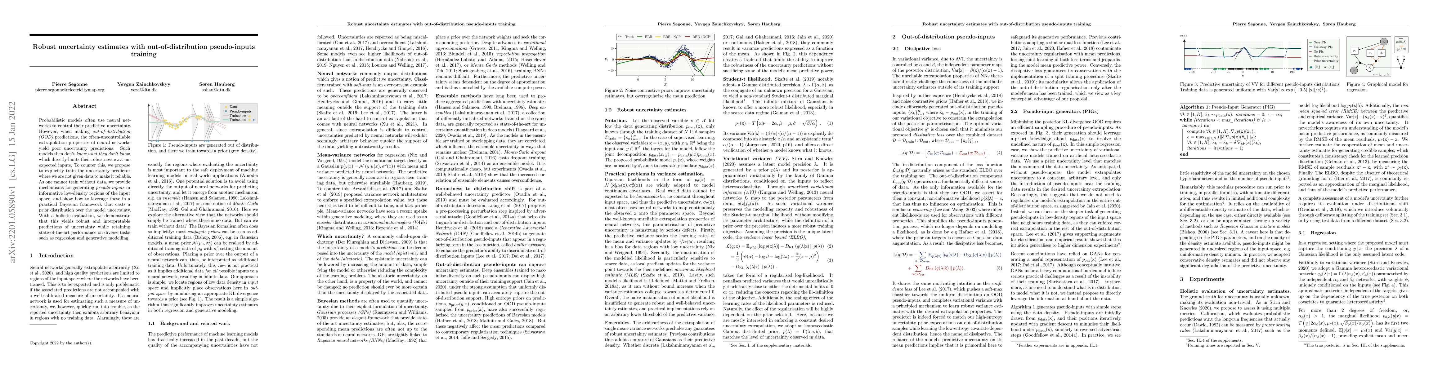 This paper proposes a method to improve uncertainty estimates in probabilistic neural networks by training the uncertainty predictor with pseudo-inputs in low-density regions of the input space. The approach enhances the model's robustness and interpretability for out-of-distribution predictions, achieving state-of-the-art performance on various tasks.