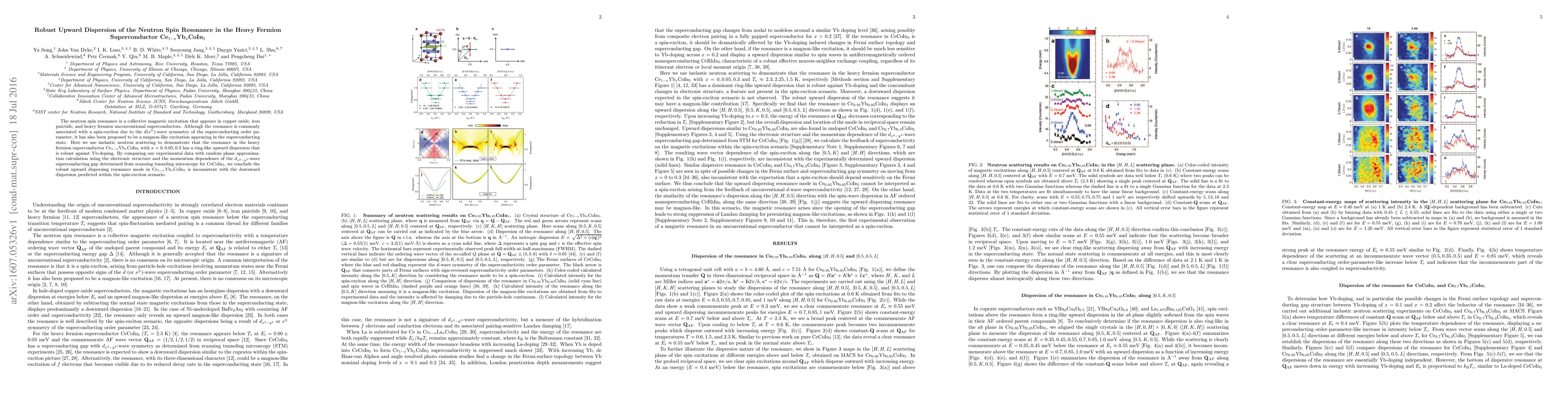 This research demonstrates, via inelastic neutron scattering, that the neutron spin resonance in the heavy fermion superconductor Ce$_{1-x}$Yb$_{x}$CoIn$_5$ exhibits robust upward dispersion regardless of Yb-doping levels. This finding contradicts the spin-exciton model, suggesting the resonance is more likely a magnon-like excitation in the superconducting state.