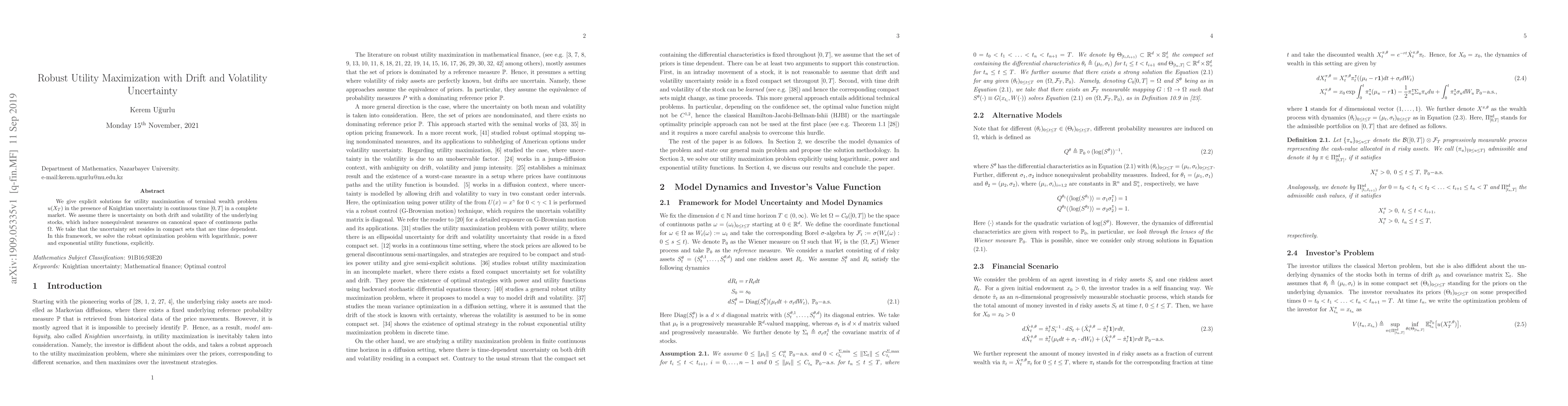 This paper provides explicit solutions for robust utility maximization in continuous time under Knightian uncertainty affecting both the drift and volatility of underlying stocks. It solves the optimization problem for logarithmic, power, and exponential utility functions within a framework where uncertainty sets are compact and time-dependent.