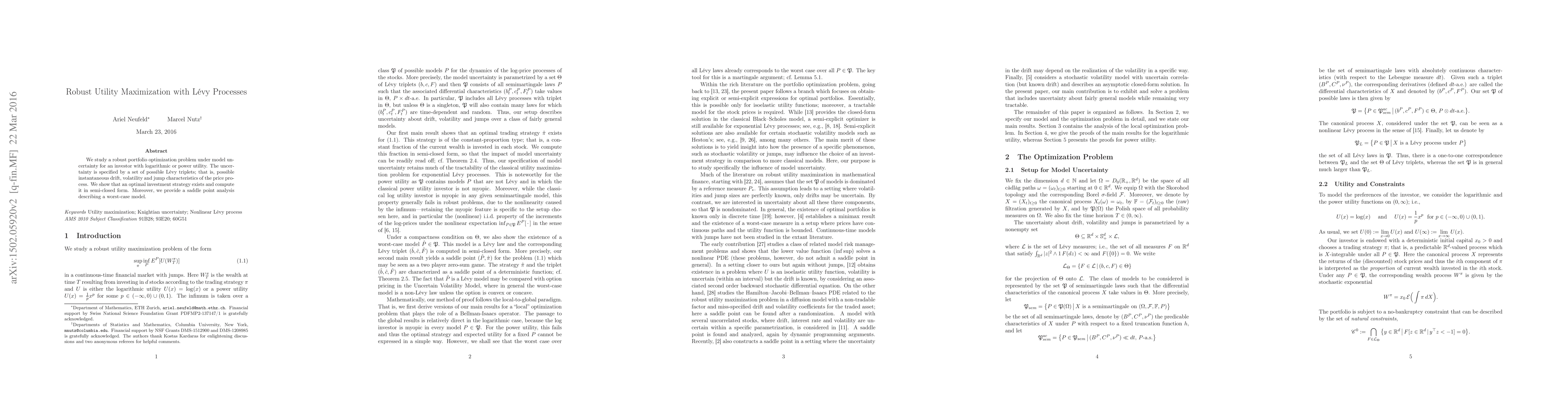 This paper investigates robust portfolio optimization under model uncertainty for investors with logarithmic or power utility, considering a set of possible Lévy processes. It demonstrates the existence of an optimal investment strategy and presents it in semi-closed form, along with a saddle point analysis for a worst-case model.