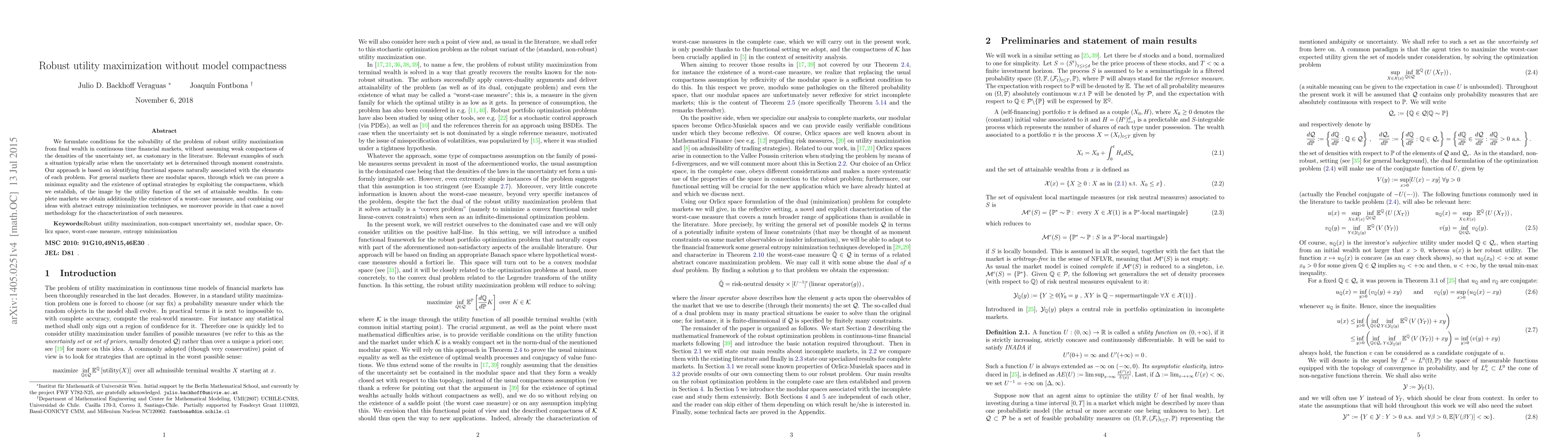 We formulate conditions for the solvability of the problem of robust utility maximization from final wealth in continuous time financial markets, without assuming weak compactness of the densities of the uncertainty set, as customary in the literature. Relevant examples of such a situation typically arise when the uncertainty set is determined through moment constraints. Our approach is based on identifying functional spaces naturally associated with the elements of each problem. For general markets these are modular spaces, through which we can prove a minimax equality and the existence of optimal strategies by exploiting the compactness, which we establish, of the image by the utility function of the set of attainable wealths. In complete markets we obtain additionally the existence of a worst-case measure, and combining our ideas with abstract entropy minimization techniques, we moreover provide in that case a novel methodology for the characterization of such measures.