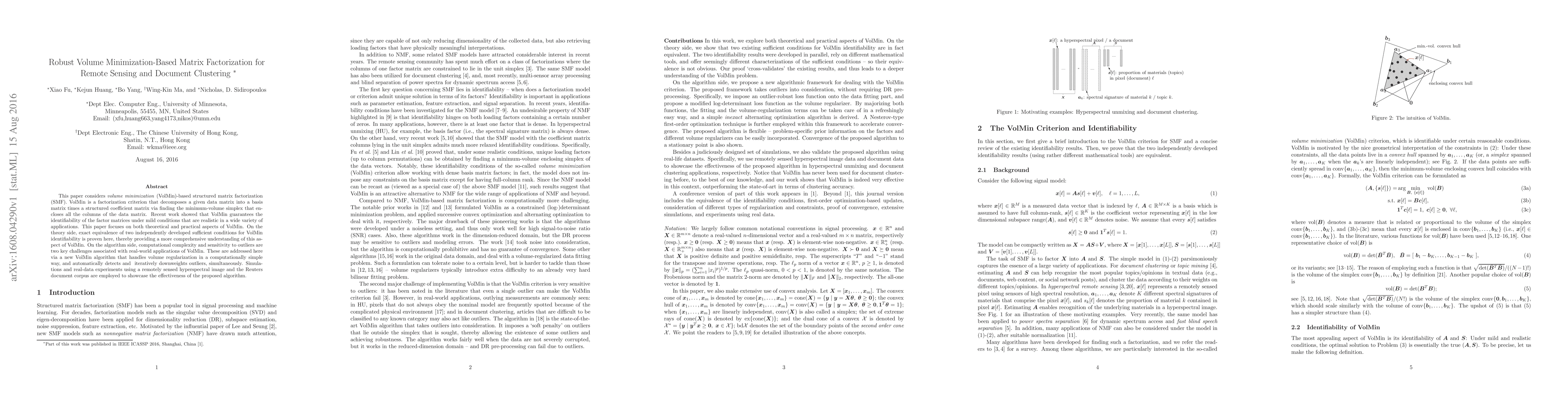 This paper considers \emph{volume minimization} (VolMin)-based structured matrix factorization (SMF). VolMin is a factorization criterion that decomposes a given data matrix into a basis matrix times a structured coefficient matrix via finding the minimum-volume simplex that encloses all the columns of the data matrix. Recent work showed that VolMin guarantees the identifiability of the factor matrices under mild conditions that are realistic in a wide variety of applications. This paper focuses on both theoretical and practical aspects of VolMin. On the theory side, exact equivalence of two independently developed sufficient conditions for VolMin identifiability is proven here, thereby providing a more comprehensive understanding of this aspect of VolMin. On the algorithm side, computational complexity and sensitivity to outliers are two key challenges associated with real-world applications of VolMin. These are addressed here via a new VolMin algorithm that handles volume regularization in a computationally simple way, and automatically detects and {iteratively downweights} outliers, simultaneously. Simulations and real-data experiments using a remotely sensed hyperspectral image and the Reuters document corpus are employed to showcase the effectiveness of the proposed algorithm.