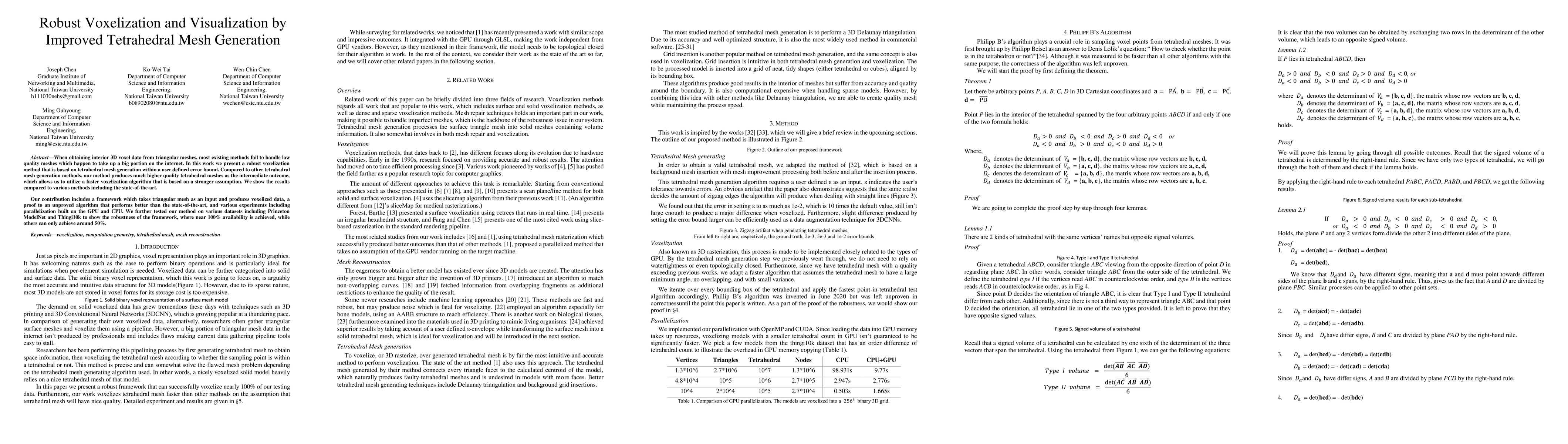 This paper presents a robust voxelization method for 3D triangular meshes, especially effective for low-quality meshes. It uses improved tetrahedral mesh generation within a user-defined error bound to produce higher quality intermediate meshes, enabling a faster voxelization algorithm. The method achieves near 100% availability on datasets like Princeton ModelNet and Thingi10k, outperforming other state-of-the-art methods.